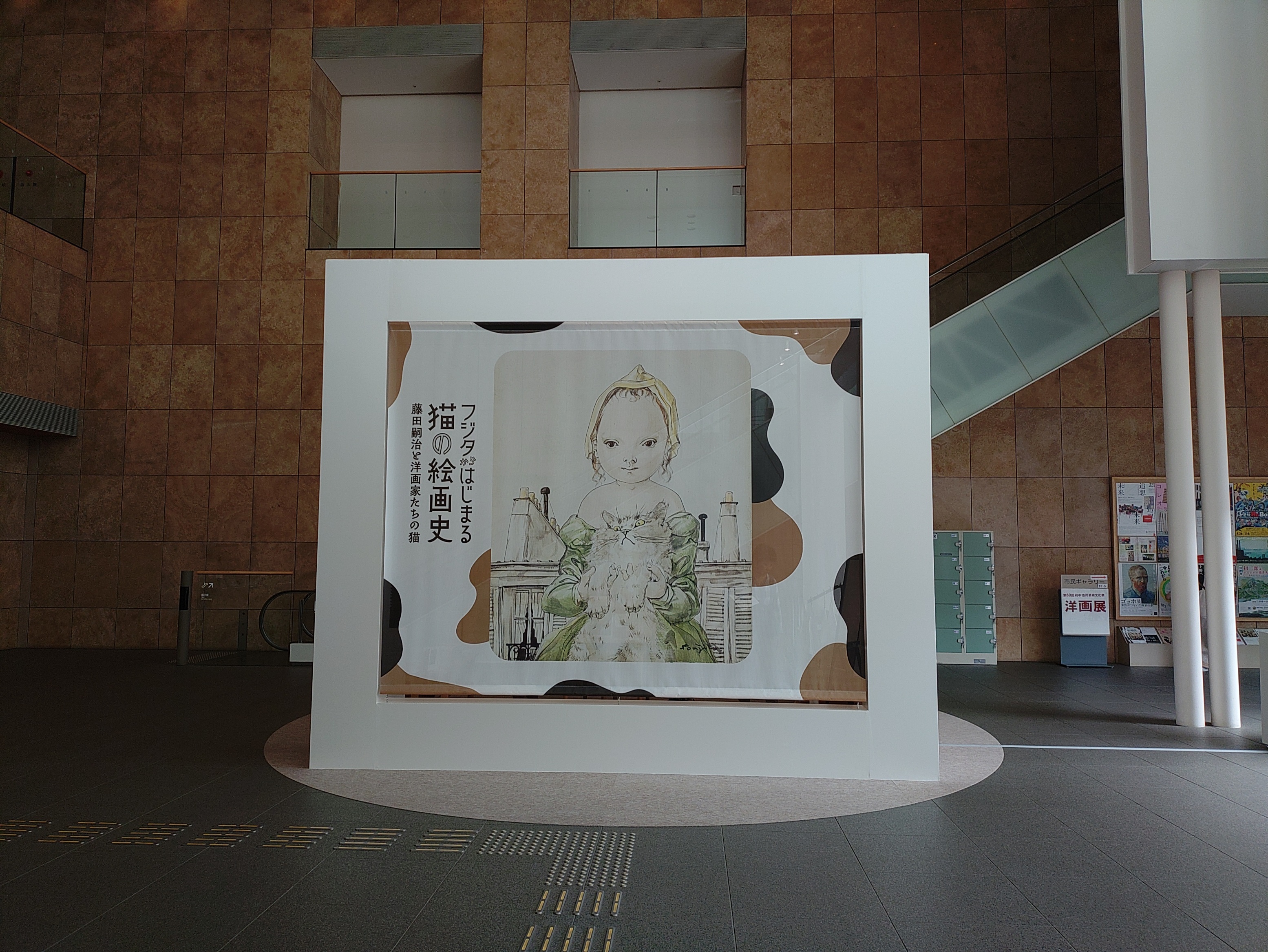 府中市美術館で『フジタからはじまる猫の絵画史 藤田嗣治と洋画家たちの猫』を見ました。戦前期の藤田嗣治の何気なく描く猫がリアルでありながら、かわいい。戦後はカリカチュアされた猫なども藤田はいっぱい描いている。本当に猫が好きだったんだ。藤田は日本画で「猫」も描いているのだけど、自ら日本画を知っていたから西洋で自分の絵が認められた、などと語っていたらしい。付け加えるに、西洋では単なる動物で背景や象徴にすぐぬものが、日本では心のある生きものなのです。真言宗の胎蔵界曼荼羅にはたくさんの心ある生きものも描かれているではないか。などという講釈はここまでとして、日本画からは、原在明の「虎耳草と猫図」、菱田春草の「黒猫」、岸田劉生の「眠猫」なんかがまたいい。ひさしぶりに熊谷守一の「白猫」も見れました。中村寛の「猫の子」や長谷川潾二郎の「猫と毛糸」のもふもふ感。猫好きにはたまらない垂涎の展覧会のようです。