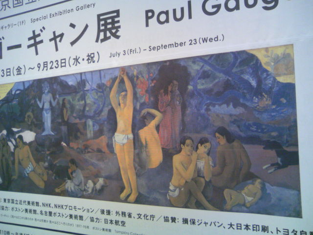 竹橋の国立近代美術館に「ゴーギャン展」を見に行った。ゴーギャンというとサマセット・モームの「月と六ペンス」という小説を思い出す。どの流派にも属さない19世紀末の絵かきの異端児、反逆児は月のような手に届かない最高に美しいもの求めながら、六ペンスに苦しんでいた。つまり、貧乏とまわりの無理解。34歳で絵筆を取り始め、55歳で1960年代のロックスターのように薬物の過剰摂取によって南の島で逝ってしまうまで終生、それはつきまとった。