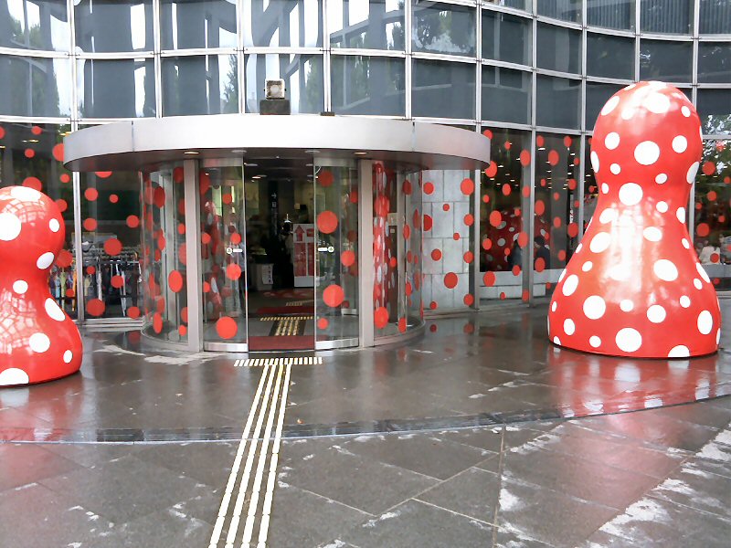 地下一階の吹き抜けになったホールに巨大な水玉の女の子の風船のオブジェが、ふわふわと置かれていて、そこでビデオが放映されている。数分間、1960年代の、前衛の、ハプニングの女王を呼ばれた若い草間彌生がモノクロ映像でテレビ・モニターに写る。まぶしいほどに、輝いている。ぼくは五十年前のニューヨーク在住の日本人の若い女性アーティストに恋をしそうになったのかもしれない。