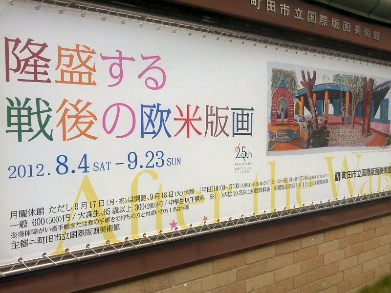 町田市立国際版画美術館に「隆盛する戦後の版画」と題された展覧会に行ってきました。欧米のその時代その時代の最新の版画をたくさん見れました。有名どころでは、やはりアンディー・ウォーホールやロイ・リキテンスタインのいわゆるポップ・アートと呼ばれる大きな原色的色使い版画を見とれました。結構、楽しい感じです。ミック・ジャガーを題材にしたリチャード・ハミルトンの作品とか、どこかで見たことがあると思いましたが、思い出せません。特に惹かれたのはジョナサン・ボロフスキーの自身の夢を描いたものとかホルスト・アンテスのネイティブ・アメリカンのホピ族の神話を描いたもの。版画って美術であると同時に工芸でもあるといつも思います。その手工業のようなところもおもしろい。