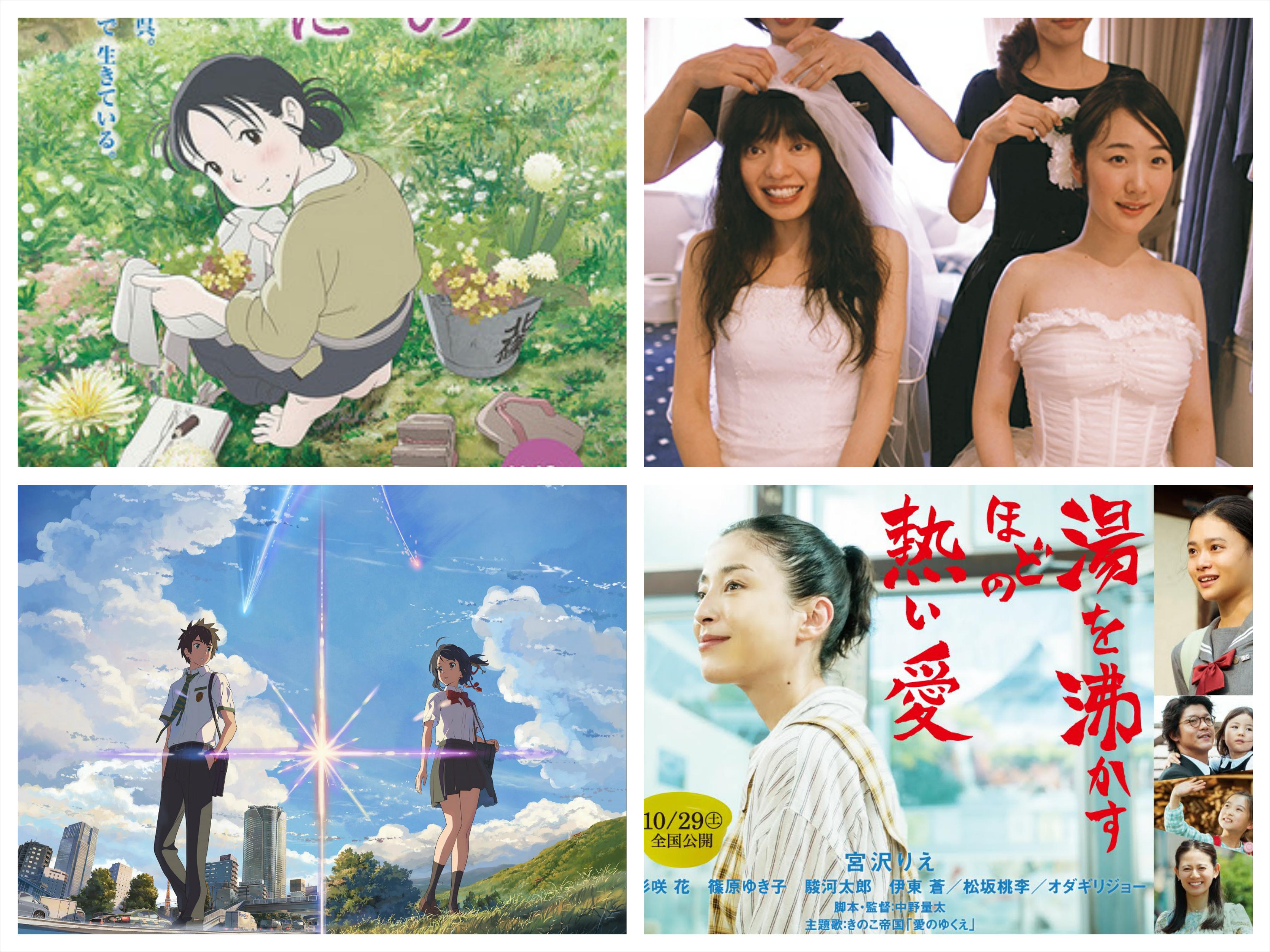 去年は日本映画が豊作の年でしした。お薦めの4本の映画は片渕須直監督の「この世界の片隅に」、岩井俊二監督の「リップヴァンウィンクルの花嫁」、新海誠監督の「君の名は。」、中野量太監督の「湯を沸かすほどの熱い愛」。「リップヴァンウィンクルの花嫁」のみ劇場公開はおしまいになりレンタルDVDとなっていて、それ以外は、劇場公開中です。どの4本も見たら、号泣必死で、劇場の暗闇で、もしくは部屋の灯りを落とした真夜中の部屋で、また見たら、ぼくは泣いてしまうでしょう。