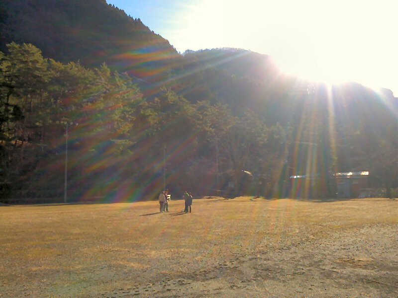 ここは昔は三里中学校、のちの早川北中学校であったところで、古い木造の学校の外観がそのまま残っています。子ども連れの家族がたくさん来ていて、ちらほら、校庭だったところで子どもたちが遊んだりしています。夜には星空観察会、朝には餅つき大会などが催されていました。