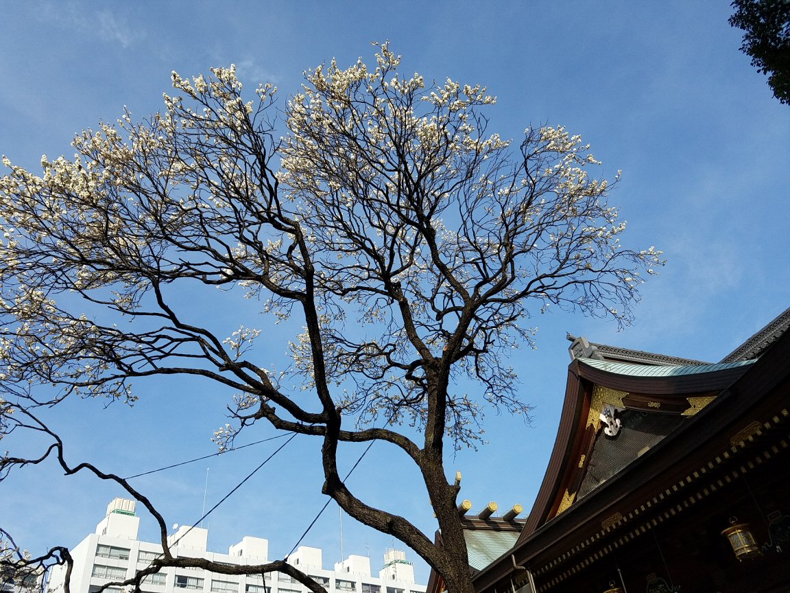湯島の湯島天神こと湯島天満宮では梅まつりが開かれておりました。梅は二分咲きか三分咲きぐらいかな。祭囃子が奏でられていてたくさんの人。
