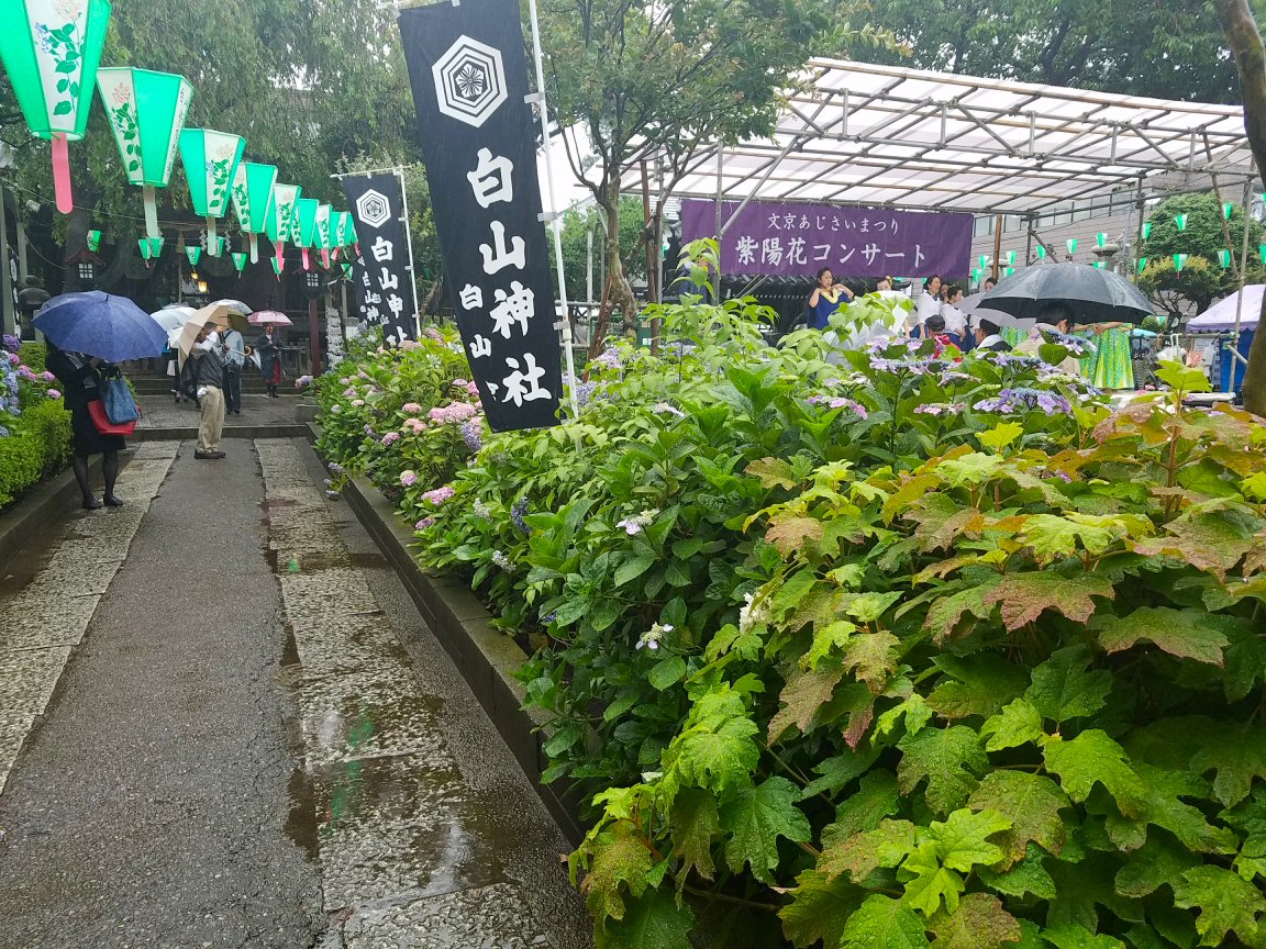 文京区の白山にある白山神社に紫陽花を見に行きました。雨に濡れた紫陽花はきれいです。