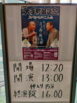 初めに柳家権太楼師匠と柳家さん喬師匠の対談がありました。共通の師である五代目柳家小さんのことやら、立川談志、柳家小三治、柳家喬太郎師匠、春風亭一之輔師匠のことなど、歯に衣着せぬ語りぶりに、公表できない内容、多し。笑ってしまう。そして、前座の柳家小きちくんの「道具や」、柳家さん喬師匠の「締め込み」、柳家権太楼師匠の「二番煎じ」で、三本の滑稽噺でおおいに笑い、仲入りです。
