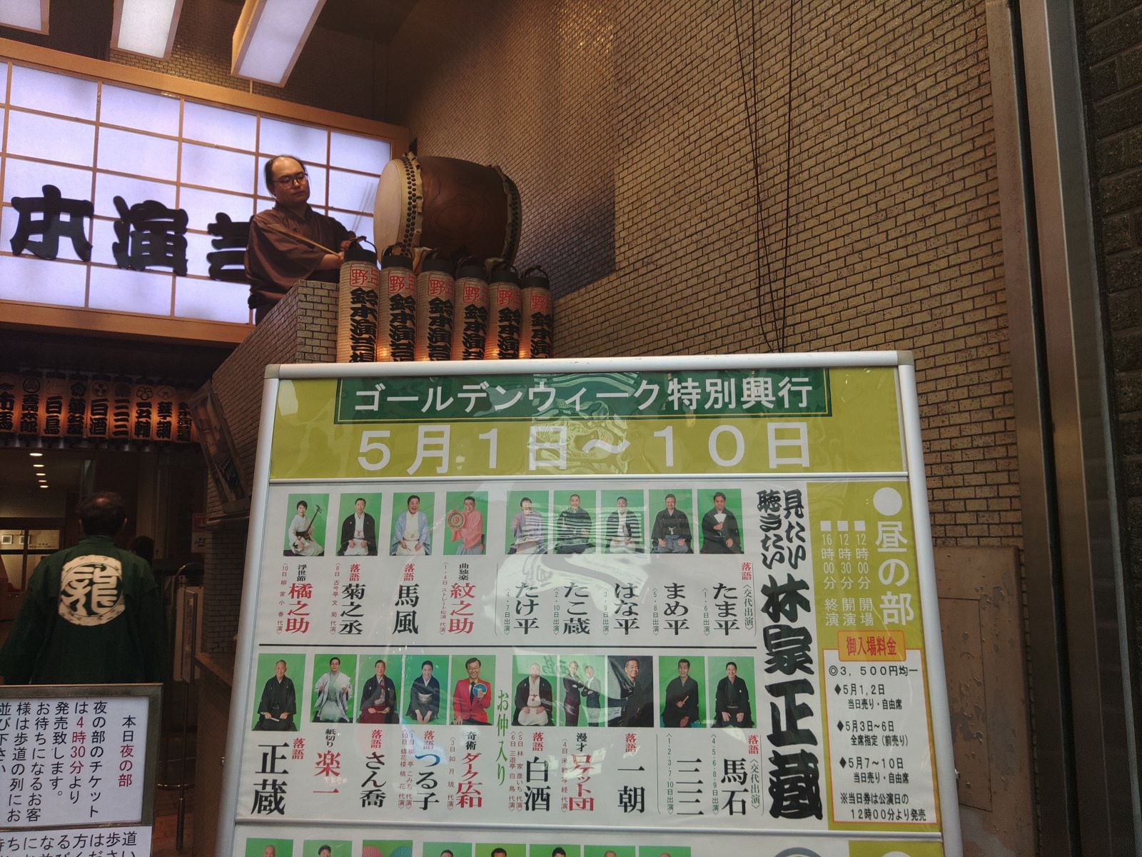 鈴本演芸場五月上席昼の部に行って参りました。見た演目を書き出してみます。柳亭市助くんの「元犬」、二つ目の林家たけ平くんの小話、三増紋之助師匠の曲独楽、鈴々舎馬風師匠の漫談、古今亭菊之丞師匠の「長短」、立花家橘之助師匠の浮世節、柳家三三師匠「道灌」、春風亭一朝師匠の「湯番屋」、ロケット団の漫才、桃月庵白酒師匠の「代脈」でお仲入りとなりました。ダーク広和さんの奇術、林家つる子師匠の「皿屋敷」、柳家さん喬師匠の「真田小僧」、林家一楽師匠の紙切り、主任の林家正蔵師匠の「一文笛」。