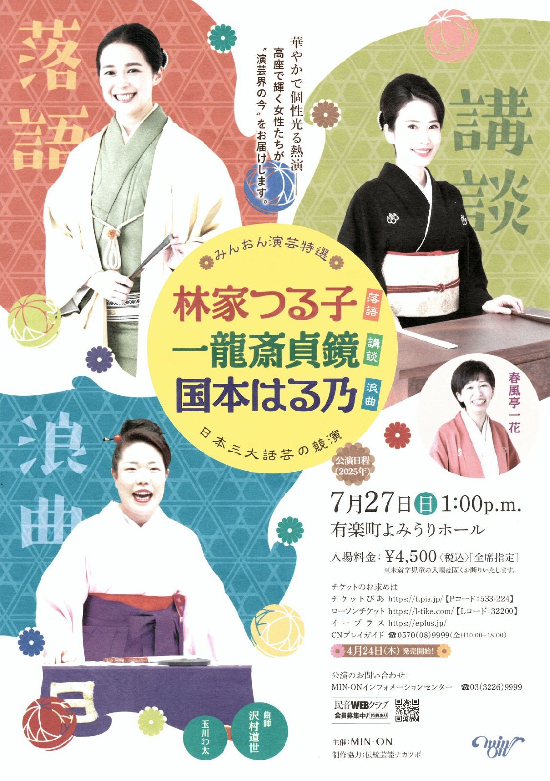 有楽町のよみうりホールで『みんおん演芸特選 林家つる子・一龍斎貞鏡・国本はる乃 落語×講談×浪曲 日本三大話芸の競演』を見ました。見た演目です。