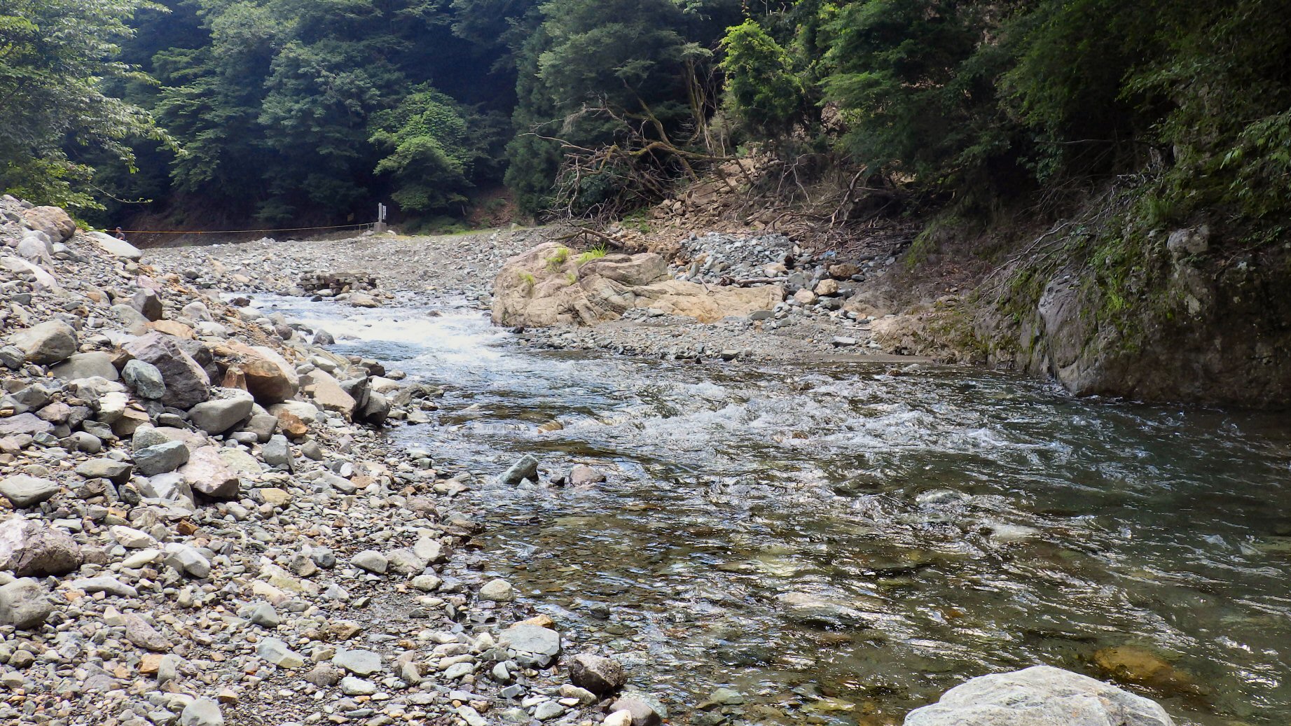神奈川県の清川村から秦野市に向かう山の中の細い道を車で走らせるとその中間点にあって、対向車が来ないことを祈りながら走らせる。(帰り道は対向車線に車が来て、ちょっとあせった。)クマ出没注意のマークのある看板も見えて、鹿が歩いているのを目撃。朝早く、丹沢ホームに着き、遊漁券を払うと、丹沢ホームの主人から山蛭に気をつけてください、などと言われる。ウェイダーを着ているからか、山蛭は大丈夫でした。
