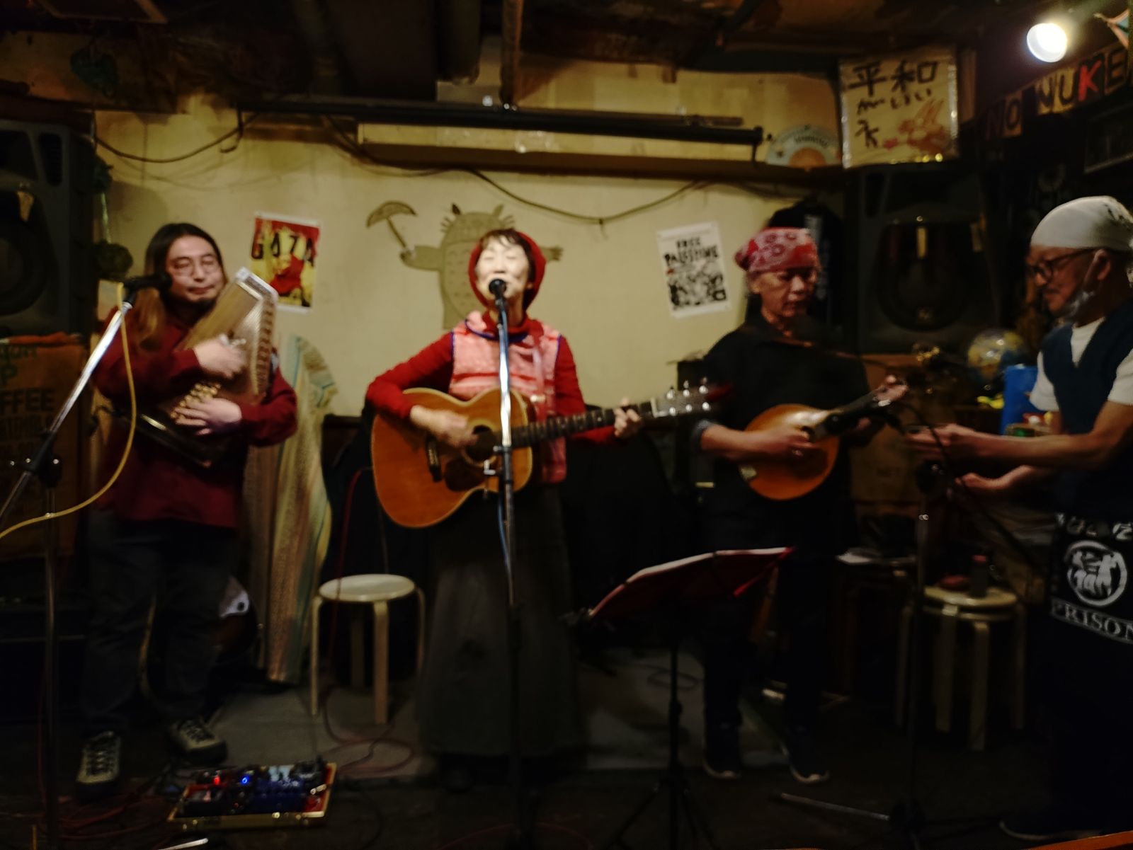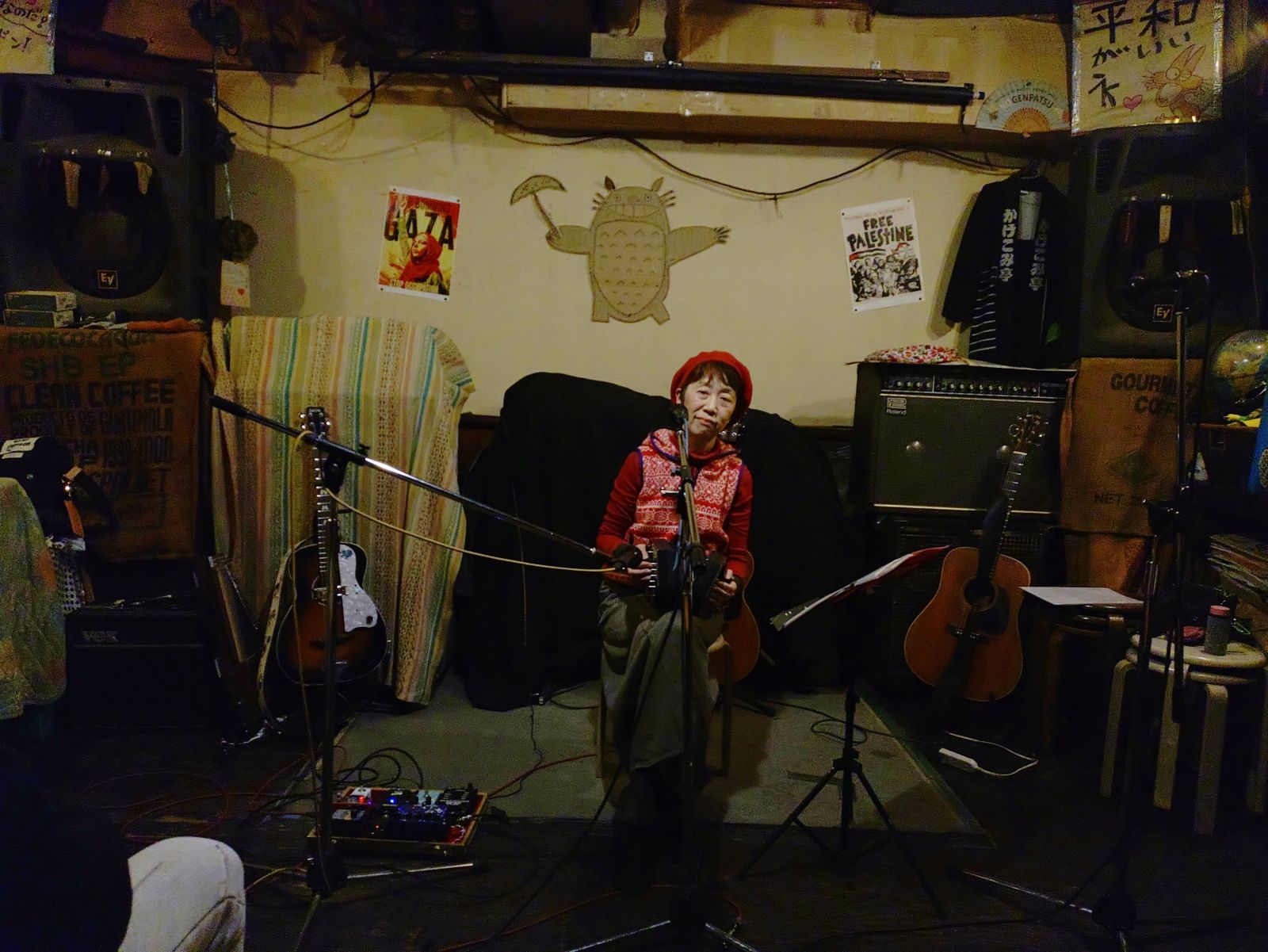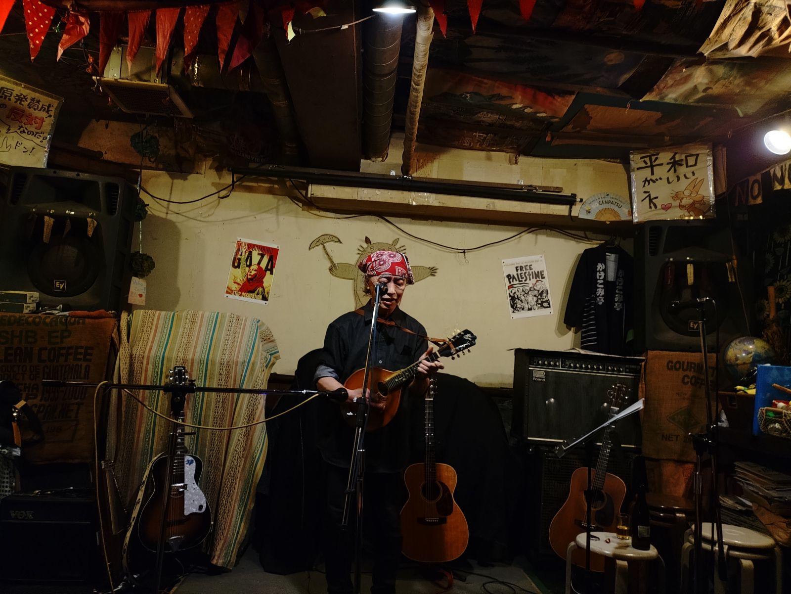今日はプロテスト・ソングがたくさん聞けたような気がします。音楽はそればかりではなくてもよいですが、戦争の世の今こそプロテスト・ソング、とぼくは思ってしまいます。ぼくは、プロテスト・ソングが好きで、例えば、変転するボブ・ディランというシンガーのアルバムの中で、特に「The Times They Are a-Changin」が好きであったりするのは、そういうことのようなのです。今夜は、野村昌毅さんがガザのことを歌ってくれた、館野公一さんは第五福竜丸のことを歌ってくれた、よねやまたかこさんは名曲「戦争をしない国」を歌ってくれた、そんな、胸が痛いような、心が素敵でもあるような、そんな夜となりました。