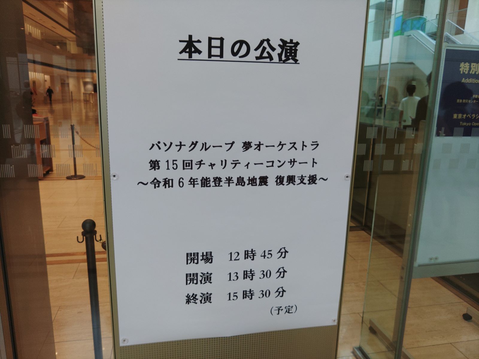 東京オペラシティコンサートホールで『パソナグループ「夢オーケストラ」第15回チャリティコンサート~能登半島地震 復興支援~』を見ました。演目は、べートーヴェンの「ロマンス第2番 へ長調」、クライスラーの「愛の悲しみ」と「愛の喜び」、ベートーヴェンの「交響曲第9番」。