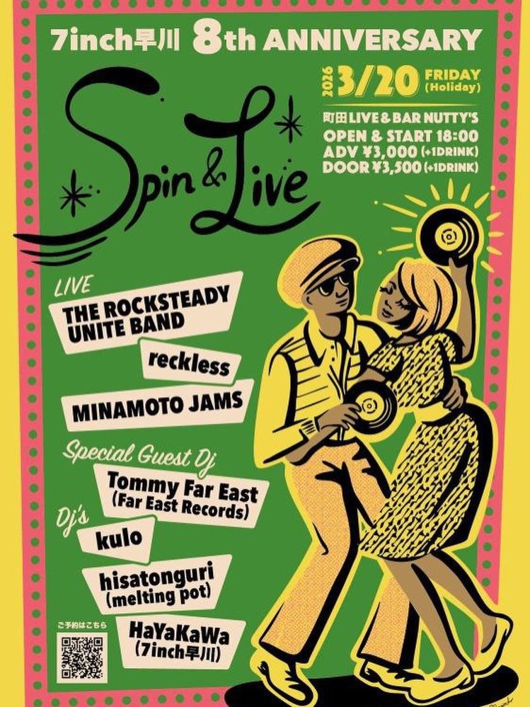 Live & BAR Nutty'sでの『7inch早川8thAnniversary Spin & Live』というライブイベントに行きました。ひさしぶりにDJでの大音響でのレゲエ系の音楽を聞いて、とても気持ちいい。バンド演奏もあり、見たバンドは出てきた順にreckless、MINAMOTO JAMS、THE ROCKSTEDY UNITE BANDの三つ。