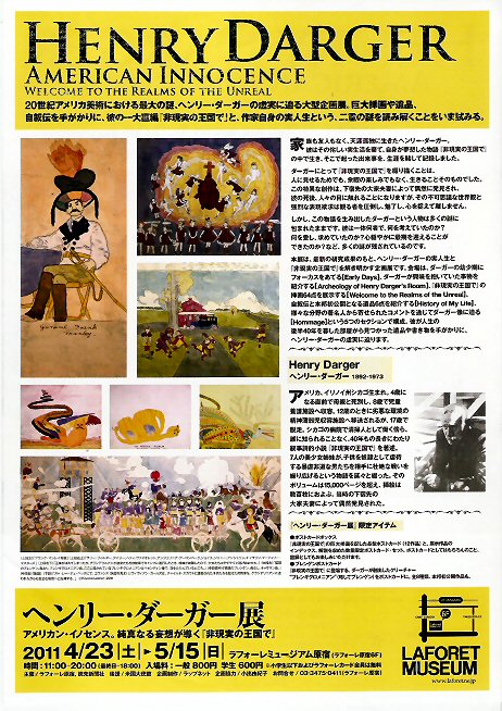 ラフォーレミュージアム原宿に「ヘンリー・ダーガー展 アメリカン・イノセンス。純真なる妄想が導く「非現実の王国で」」を見に行ったのです。そうかこのビビアン・ガールズという7人の少女たちは、ヘンリーが生き別れをして生涯会い見えることのなかった妹の影のようなものなのかと思った。もの狂いのイノセンス。ほとんど前知識なしに、ヘンリー・ダーガー、なんか聞いたことのあるような名前だなと思い、この展覧会に行って驚いたのだけど、この芸術家を発見した彼にアパートを貸していた写真家のネイサン・ラーナーはもっと驚いたことだろう。アパートを引き払う時、ヘンリーは部屋の中のものはすべて捨ててくれと言ったという。