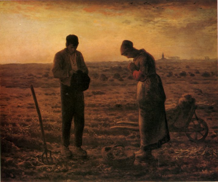 ある一枚の絵を見たいがために新国立美術館の「オルセー美術館展」に行きました。19世紀絵画の最も大きな潮流である印象派、マネの絵を中心のその成り立ちと初期の作品を展示していた。印象派に強く影響を与えた、バルビゾン派の絵画とは、印象派が芽を出すその直前にたくさんの当時の画家たちがフランスのバルビゾン村を訪れ、自然を、田園を、生活を、人々を描いた、それらを指す。その中の一枚、ジャン=フランソワ・ミレーの描いた「晩鐘」は、ぼくが一度は、本物、実物を見てみたいと思っていた絵。その絵の前で、長い間、たたずんていたのです。すると、誰かのひそひそ声が聞こえもしました。ずいぶん暗い絵だね、と話している。ぼくは、暗いなのだけど、その絵から、バルビゾンの村を清い空気でつつみこむかのような、夕暮れの鐘の音を聞いているみたいなのだった。その清浄さにあらがえない時間とか自然とかを感じつつ、この絵を見る喜びに満たされていたようなのだ。ついに見た「晩鐘」なのです。