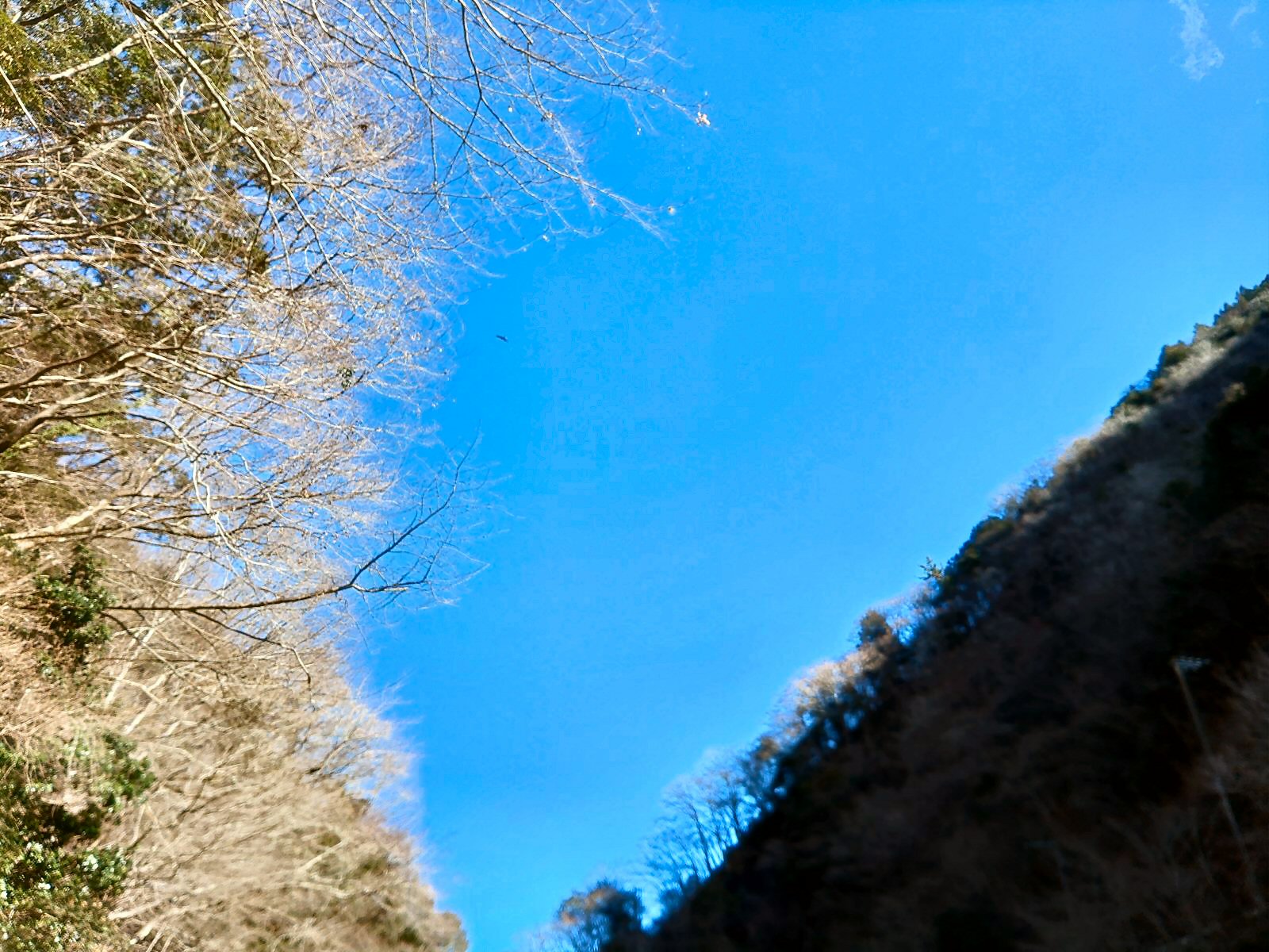 この前、うらたんざわ渓流釣場の人気の少ないフライフィッシングとテンカラ釣りの専門エリア、ヤマメクラシックⅠというところで釣りをしていた時のこと、毛鉤を変えて結びなおして、ふと誰かの強い視線を感じ、顔あげた瞬間、大きな黒い冬毛の鹿と目が合い、驚きました。その鹿は、バンビのような茶色い毛ではなく、黒い毛でおおわれ、その体躯の大きさと野生に生きている生きものの威厳に、ぼくはたじたじとなり、恐ろしさも感じ、襲われたら命の危険すらあると思い、そーっとその場を離れつつも、勇気をだして写真をパチリ。