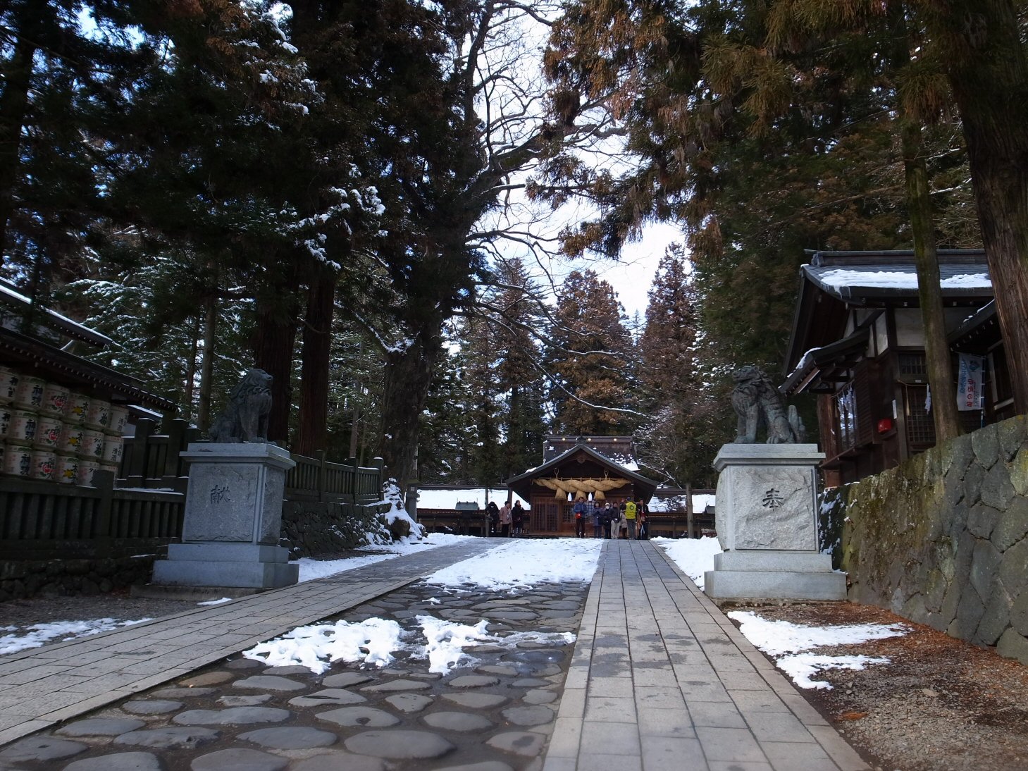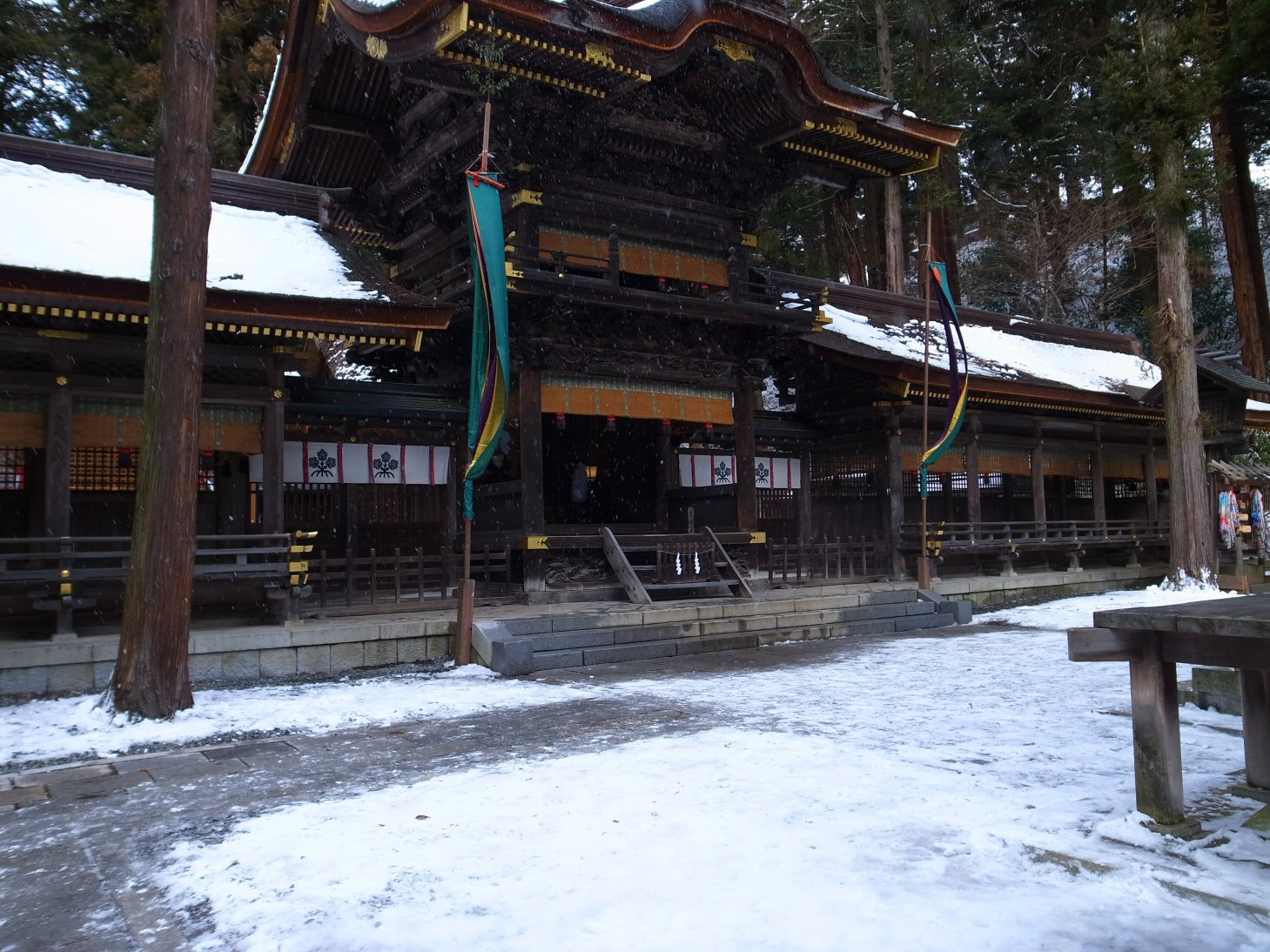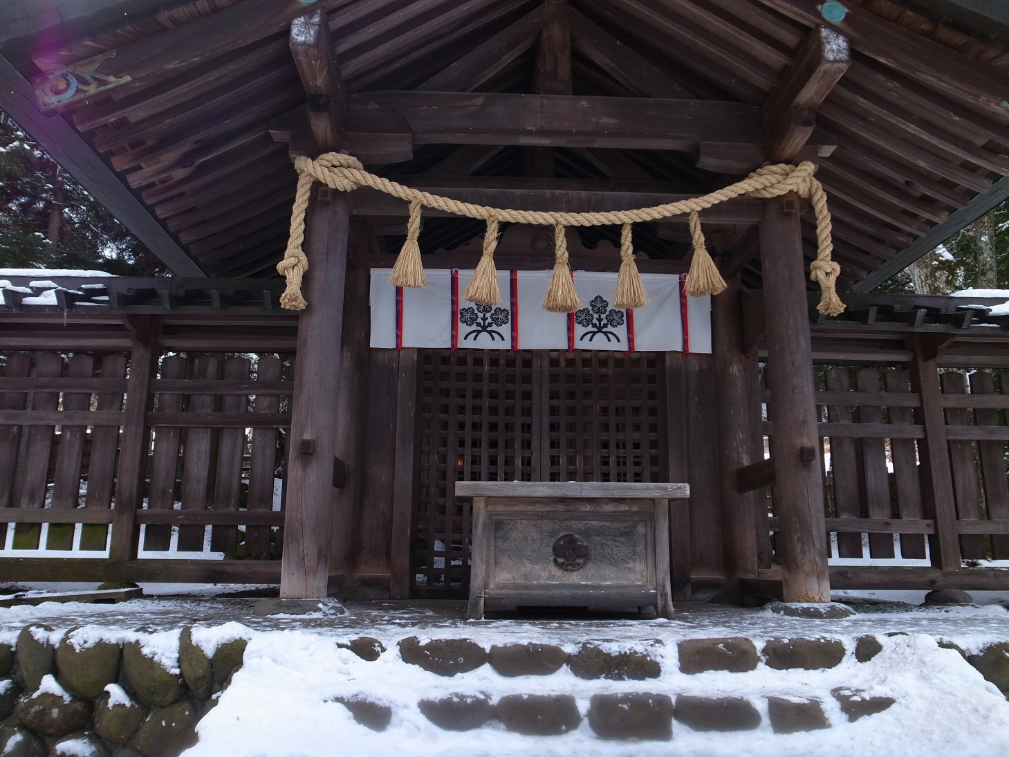 茅野の駅を降りて、諏訪大社上社前宮に向かいます。小高い所に雪につつまれたある古い社です。