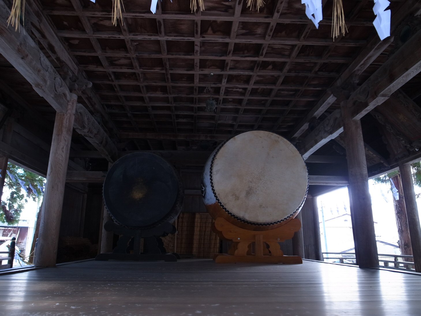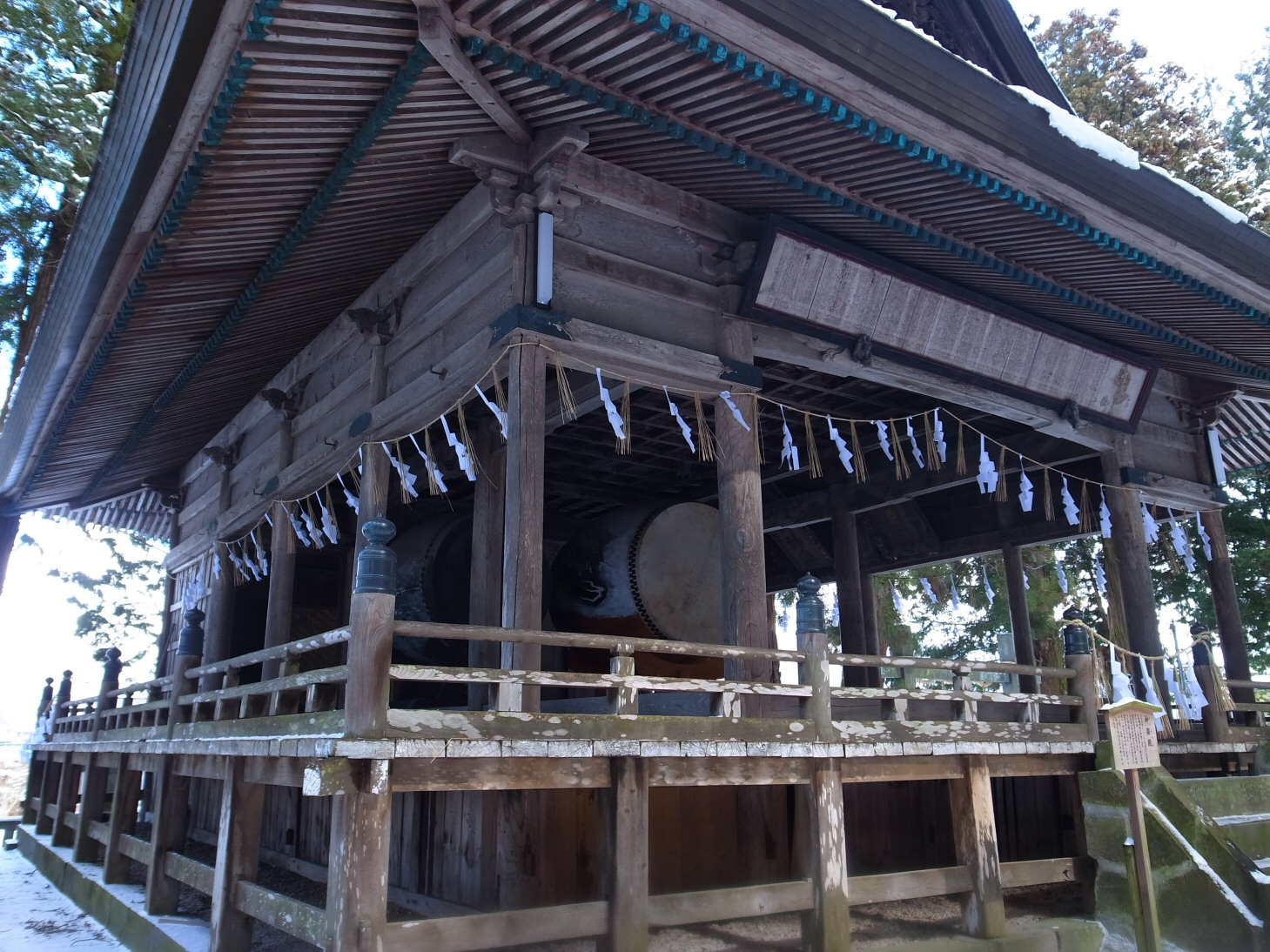 それから、諏訪大社上社本宮に向かいます。ここでの大きな人の背丈の何倍もある和太鼓の大きさに驚く。叩いたなら、どんな音がするのだろう?