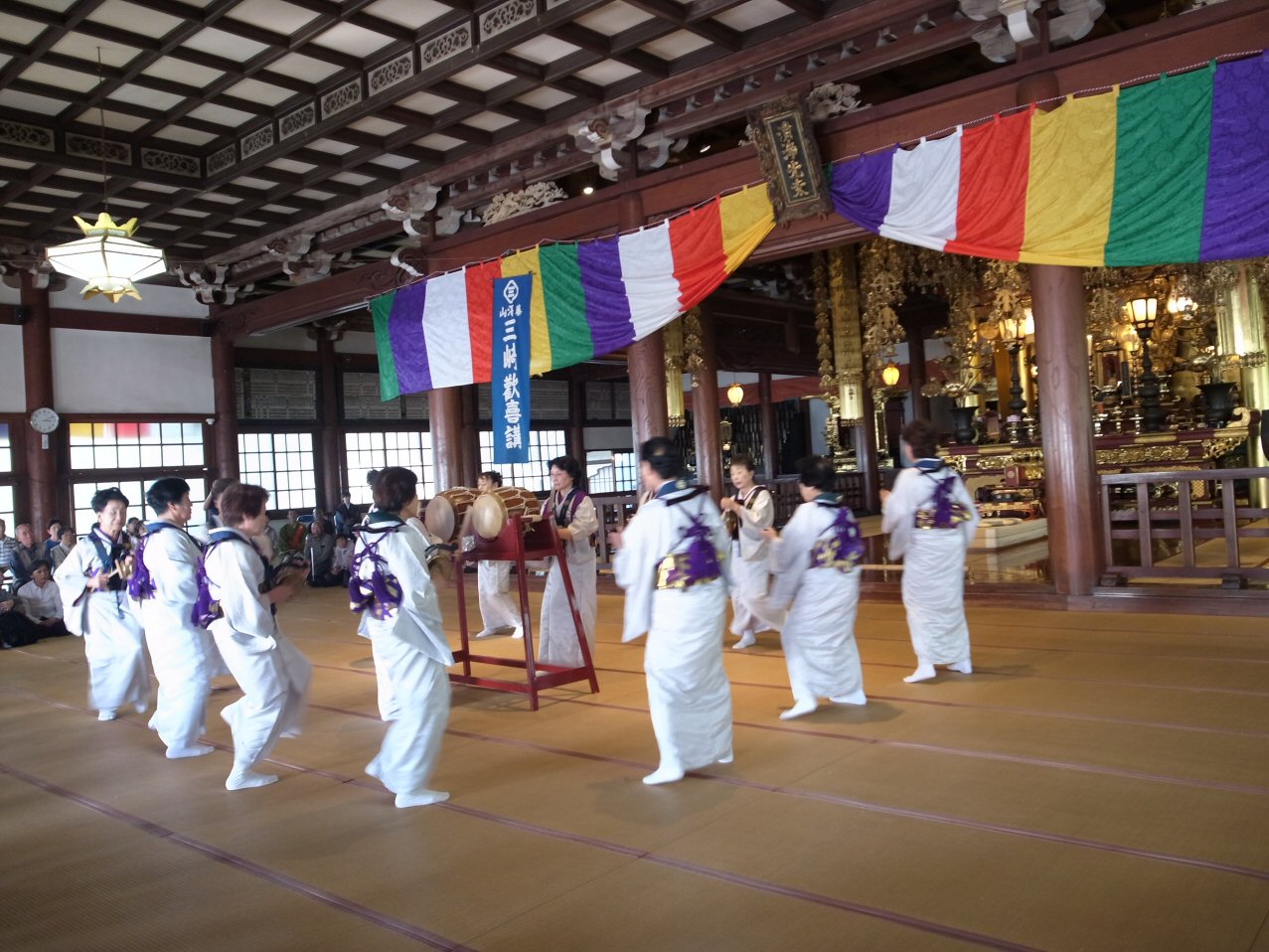 遊行寺はボ・ガンボズのどんとの法要を行っているところで、一遍上人が広めた踊念仏が日本のロックンロールやファンクの大祖なのかもしれない、などとも思ってしまう。それで、行ってみたら、なんと、踊念仏保存会の人たちが、本堂の中で踊念仏を踊っていたのです。鎌倉時代の一遍上人が生きていたころは、なにやら、幾千や幾万の老若男女入り乱れての、激しい踊りだったそうなのだけど、平成の踊念仏、静かなばあさまたちの祈りを感じさせてくれるようなものでもあった。