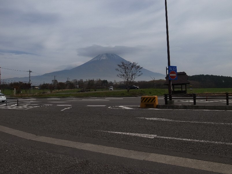 車で朝霧高原を通過する。富士山がとても大きく見えます。こんなのが爆発したり、噴火したりしたら、とっても怖い、と思いました。