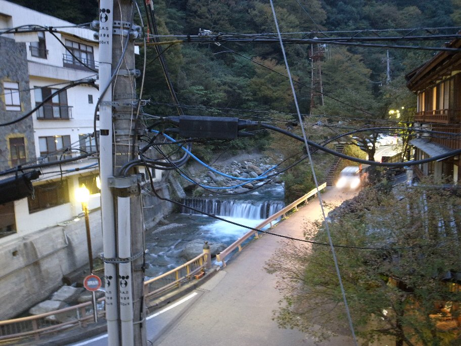 本当に昭和の香りがぷんぷんする温泉旅館に泊まります。今日は団体客がいて、いつもより賑わっています。向かいの旅館が火事で焼失しているのは少しショック。やはりその写真は撮りませんでした。そんかわりに窓から温泉街の情緒ある町並みをパチリ。夕食前に温泉に入っていると、一見さんの団体客が入ってきますが、ぬる湯には入ろうとはしませんな。昔、初めて来た時に仲居さんが説明してくれたここの温泉を思い出します。まずわかし湯に入り、体を温める、そして、ぬる湯に入り長くつかる、さらに、わかし湯とぬる湯を入るのを繰り返す、あがる時にさっとわかし湯に入る。こうすると本当に気持ちいいのです。ぬる湯は30度ぐらいの温度で、入る時すこし冷たいと感じるのだけど、すぐに慣れて、慣れるとのぼせることがないので、いつまでも入っていられて、そのうちすこしだけぬめった湯が少しづつ肌に吸い込まれるようで、体中に小さな気泡に粒がまとわりつくのです。これが気持ちいい。いつまでも入っていたくなります。下部温泉のこの入り方とこの湯、最高ですな。