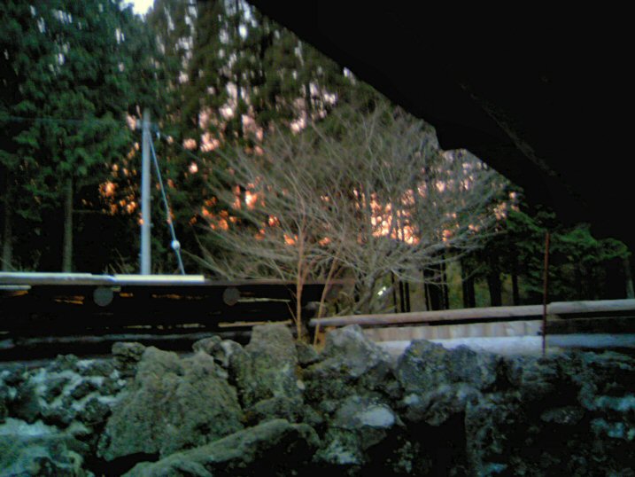 夕食前にひなびた温泉に入っていると、硫黄の湯のあの独特のゆで卵みたいな匂いの立ち込める中、天気雨ならぬ、天気雪が降ってきた。ほとんど雲のない暮れかかる空を見渡して、どこから降ってくるのだろうと不思議に思う。はらはらと雪が硫黄の湯に溶けていく。いい湯だなぁ。