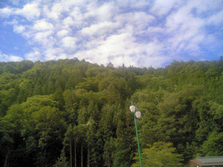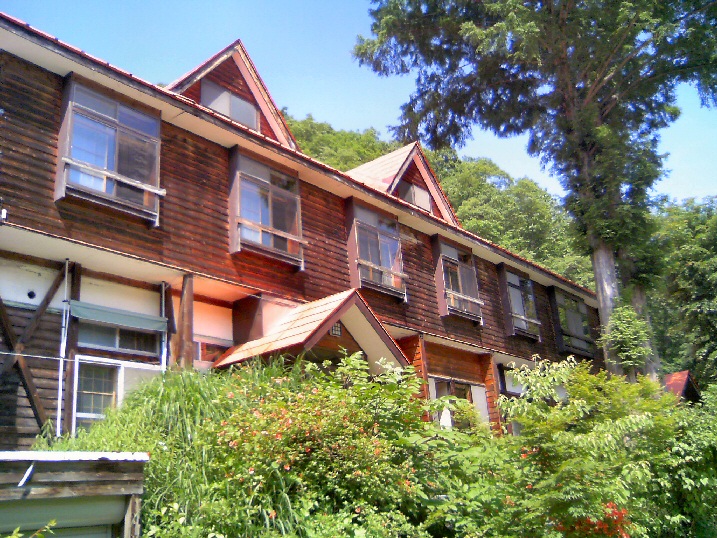 さっそく、別棟の温泉に行ってみる。大きな窓に深くなりつつある初夏の緑がまぶしい。お風呂はとても熱かった。湯船のところに蛇口があったんで、水をうべて入ってしまいました。そのためにこの蛇口はあるのかな? どうせ、今夜はぼく一人だし。