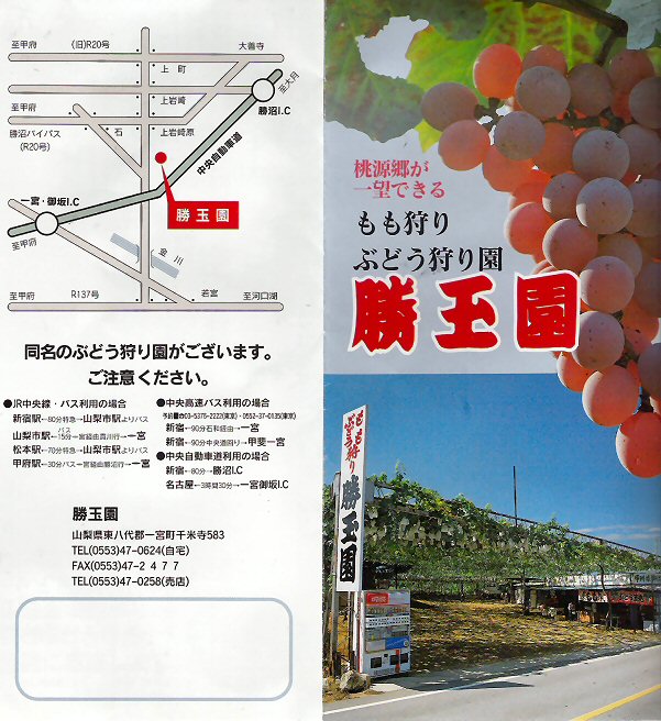 山梨までドライブした。フラフラと気ままなドライブ。葡萄狩りをしようということになり、一の宮付近で車で走らせる。ここらあたりは本当にたくさんの葡萄園。午後4時ぐろいに「勝王園」というところに直感で入った。ぼくの直感は、ある時はするどい。