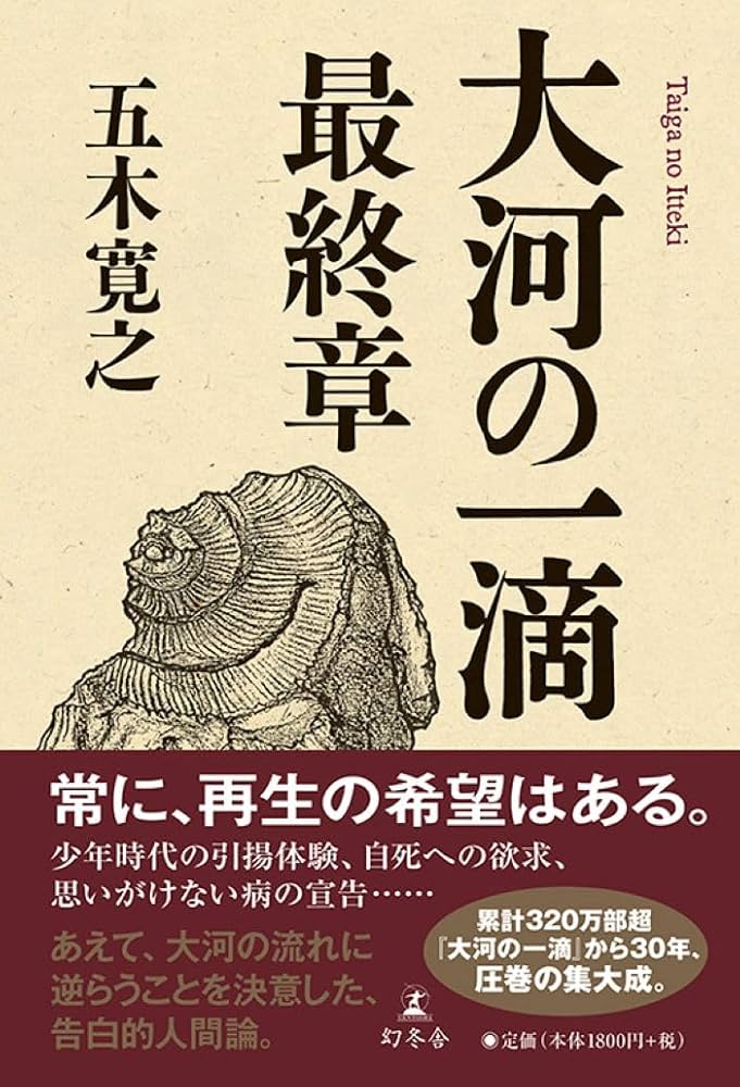 五木寛之さんの著した『大河の一滴 最終章』が面白くて、一気に読みました。病を患い、自らの終焉を意識したエッセイです。総合病院での医師との生々しいやりとりから、五木寛之さんの、93年の人生の感想が述べられます。そして、他力についてや、ポルトガルの「サウダージ」、アメリカの「ブルース」、韓国の「恨」、ロシアの「トスカ」、中国の「悒」、それらに通ずる日本の明治の人たちの「暗愁」への共感ということなどが語られます。日本の外地で経験した敗戦の悲惨の中、母の死、内地への帰国後の父の死、五木さんの中では、戦後はついに生涯、終わらなかったようなのです。考えさせられる、二度とない読書となりました。