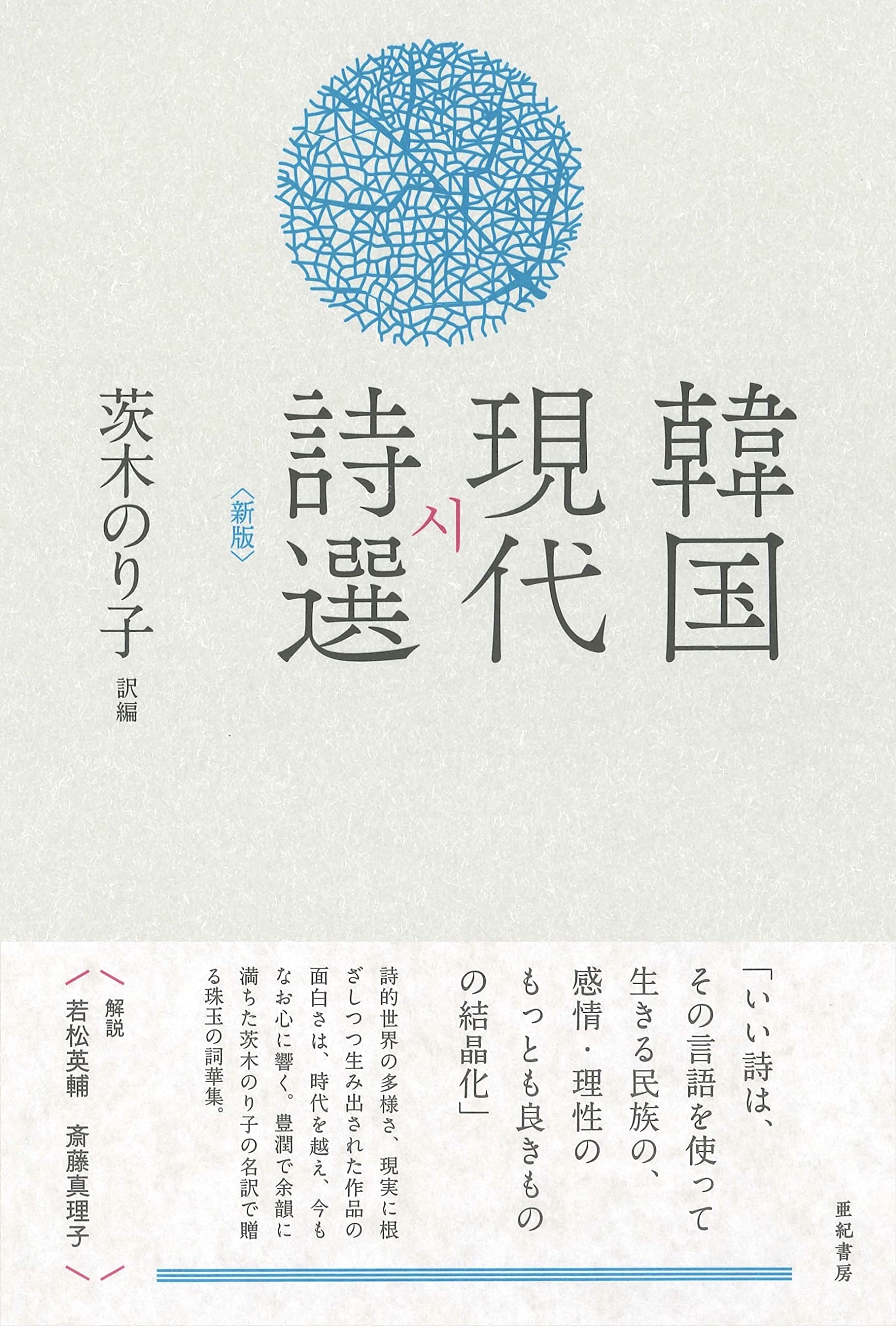 茨木のり子さんが訳し、編集した『韓国現代詩選<新版>』を読む。1990年に日本の詩人によって選ばれ、訳され、日本で出版された隣の国の1980年代の現代詩のアンソロジーが装いも新たに去年、出版された本。
