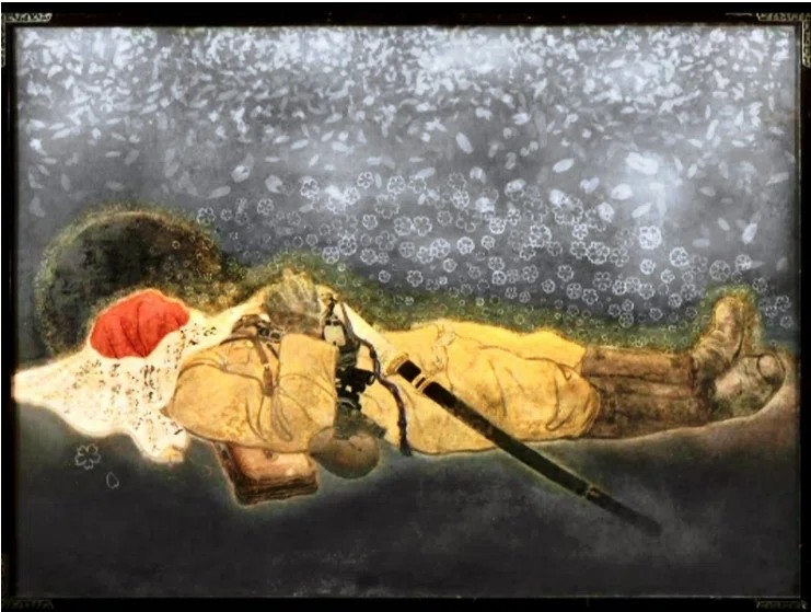 この本で取り上げられている絵が、はたして芸術なのか、軍国主義プロパガンダの宣伝にすぎないのか? 多くは宣伝でしかないだろうが、藤田嗣治の「アッソ島玉砕」や「サイパン島同胞忠節全うす」、小早川秋聲の戦時中は軍部の受け取りと天覧を拒否され、戦後に散る桜の花を作者自身により黒く塗り足された「国の楯」にぼくの心は揺らいでしまう。この三点は展覧会でも見たことがあって、忘れられない。