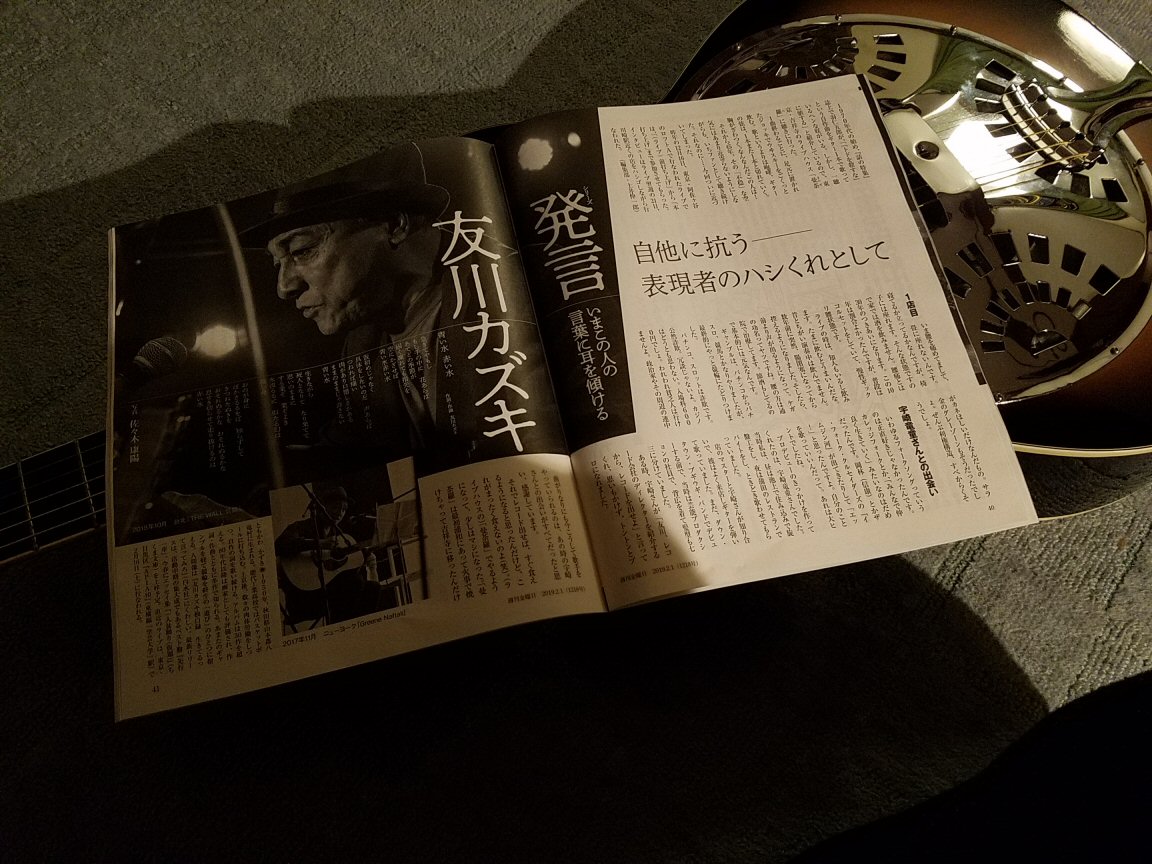 友川カズキのインタビューが読みたくて、週刊金曜日を買ってしまいました。題して「自他に抗う―表現者のハシくれとして」。やっぱ友川カズキさんの話は面白くて、ぼくは全面的に共感してしまうなどというと、友川さんからおまえは自分ってのがあるのかよとお叱りを受けそうだ。何せ、高校生のころから、友川さんはぼくがどこか、忘れずに追いつづけてきた人なのです。友川さんのこのインタビューについての言葉。
