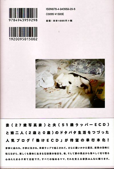 51歳のラッパーのお父さんと27歳の写真家のお母さん、その間に2歳と0歳の子ども2人と猫3匹の日記をお母さんが綴った、そのような1年間の日記を読んだ。毎日の出費家計簿付きで、お父さんの月給は16万5千円で家賃11万円だそうだ。その本とは植本一子さんが著した「働けECD わたしの育児混沌記」。この本には貧困を越えての家族の愛の物語がいっぱいつまっています。そして、ページの間にさしはさまった一子さんのお父さんや子どもたち、猫ちゃんをとらえた写真があまりに美しくて素敵です。それから、脱原発のデモで知ったのだけどこのECDとかRankin' Taxiとかのベテランがとんがったまんま流されずにインデペンデントに音楽をつづけているのを知って、とってもうれしいです。