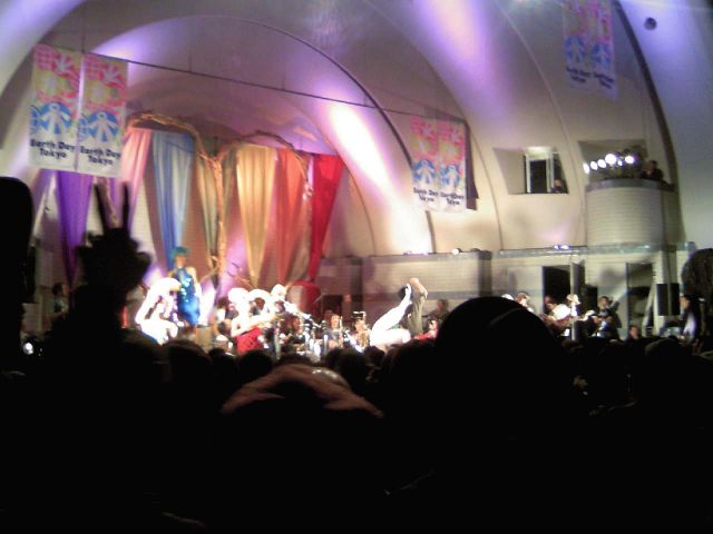お目当ては夕方からの渋さ知らズのライブ。おぁ、地底からの咆哮のようなジャズ、というかサウンド。大きなバナナをもったダンサー、白塗り半裸の舞踏の人、漁師のラッパー。このまえカリンバを教えてくれたアキートさんもいる。日本を代表するようなジャズプレイヤーがこぞって参加して、吹きまくり、弾きまくり、決めるところは決めるのだ。