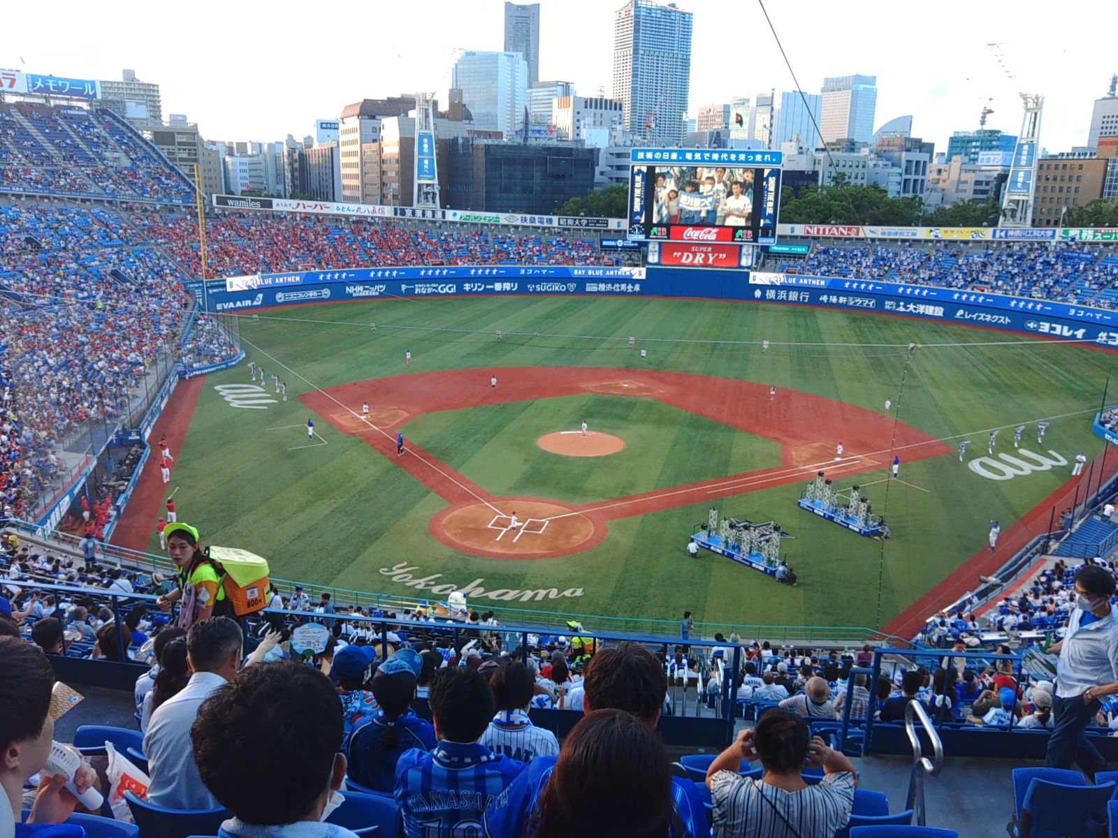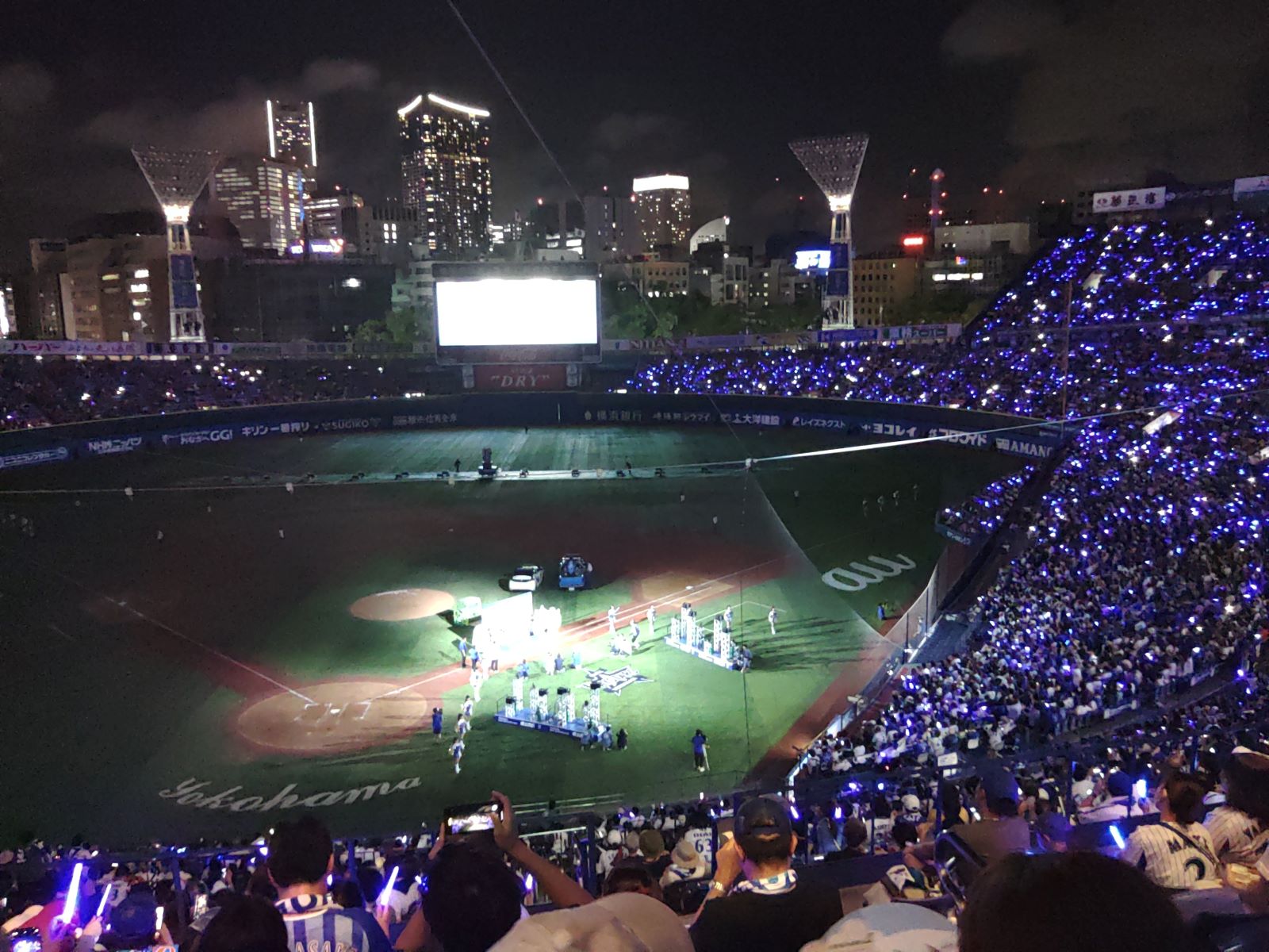 夜の横浜スタジアム。ベイスターズは夏に入って調子悪く、首位だったのが、いつのまにやらセリーグのBクラスで4位。夏が来て、失速するというのはいつも見た景色で、またかとも思い、このままではクライマックスシリーズも出れはしないのではないかしら? 夏に入って失速するというのは、スタミナ不足で、スタミナ不足は地味な走り込みなどの練習不足かもしれんなぁ。わからんけど、優勝を夢見るぼくのような長年のファンもトホホ。けれど、この日はカープに3対1で勝ちました。少しの希望をつないでくれましたよ。フレーフレー、ベイスターズ。