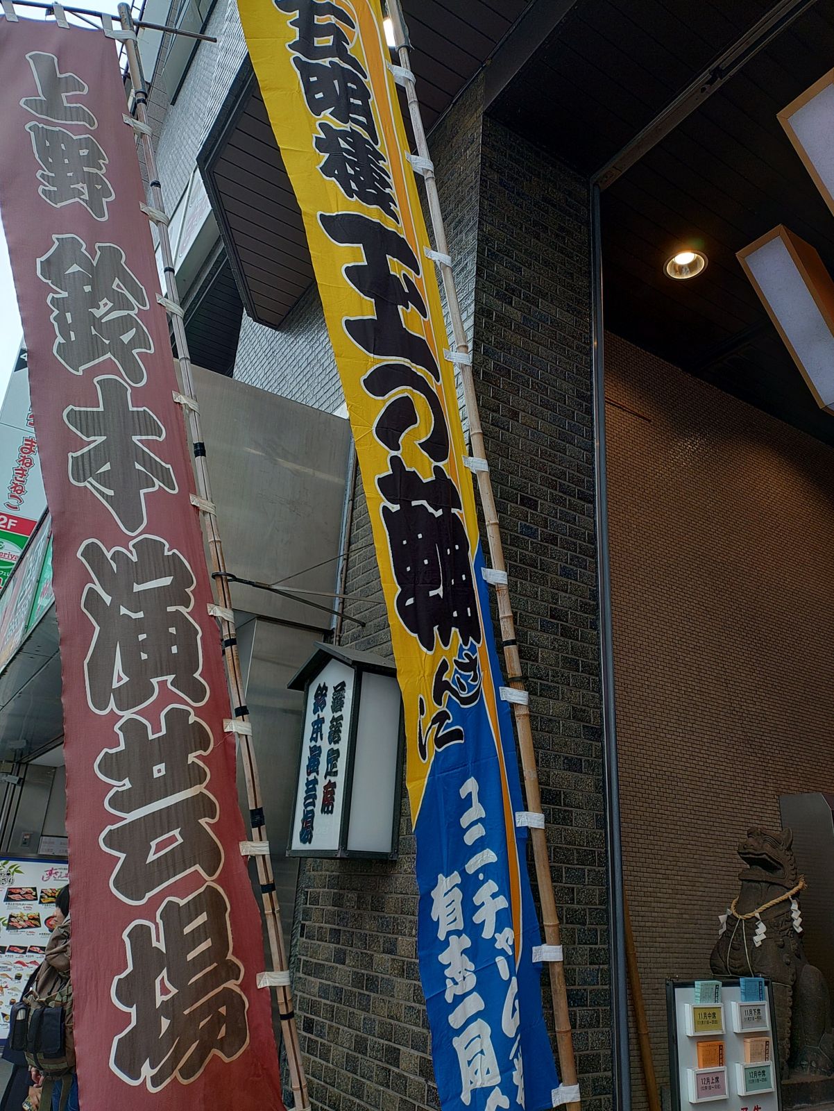 十一月十三日、上野の鈴本演芸場にて令和七年十一月中席昼の部です。見た演目を書き出してみます。前座の三遊亭歌ん太くんの「大安売り」、二つ目の春風亭㐂いちくんの「浮世床」、ダーク広和さんの奇術、橘家文蔵師匠の「道灌」、三遊亭丈助師匠の「寿限無」、青空一風師匠、青空千風師匠のお二人の漫才、三遊亭白鳥師匠の「シンデレラ伝説」、橘家圓太郎師匠の「小言念仏」、鏡味仙志郎師匠と鏡味仙成師匠のお二人の太神楽曲芸、春風亭一朝師匠の「目黒の秋刀魚」でお仲入りとなりました。お仲入りの後、林家楽一師匠の紙切り 、春風亭柳枝師匠の「権助魚」、桂藤兵衛師匠の「地見屋」、柳家小菊師匠の三味線弾きの、唄いの粋曲、主任は五明樓玉の輔師匠の「芝浜」でした。