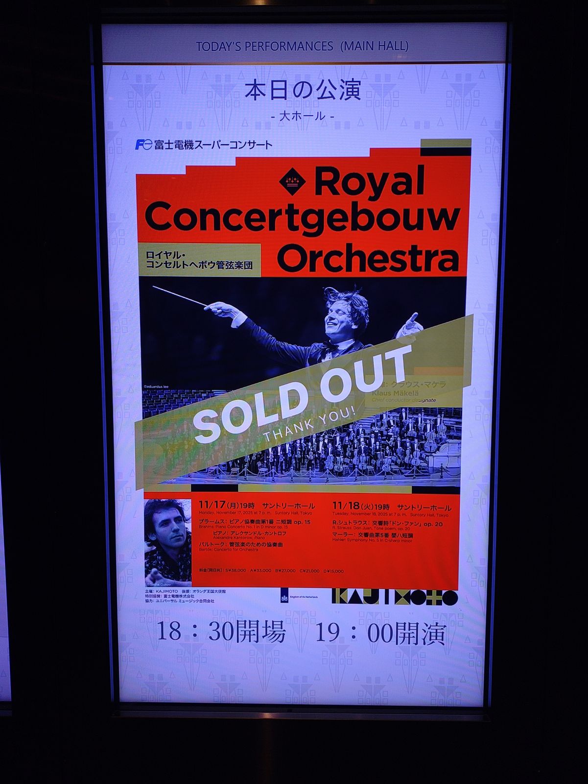 サントリーホールでクラウス・マケラさん指揮のロイヤル・コンセルトヘボウ管弦楽団のコンサートを見ました。ロイヤル・コンセルトヘボウ管弦楽団はオランダを拠点とするオーケストラです。披露された曲はR. シュトラウスの「交響詩「ドン・ファン」」とマーラーの「交響曲第5番 嬰ハ短調」。