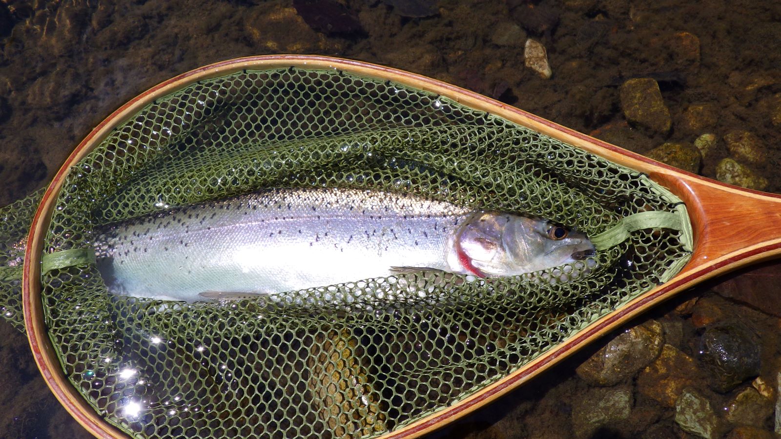 初めて行く川はいつもボーズ(一匹も釣れないこと)なので、今回もそのパターンかなと思いきや、二日目に余裕で尺越えする大きな虹鱒が釣れてとても嬉しかったです。ランディングネットに釣り上げて、写真をパチリと撮って、針をはずし、魚を放した後には、自然に力持ちのポーズをし、誰も聞いていないのに「やった」と声をはりあげてしまいました。