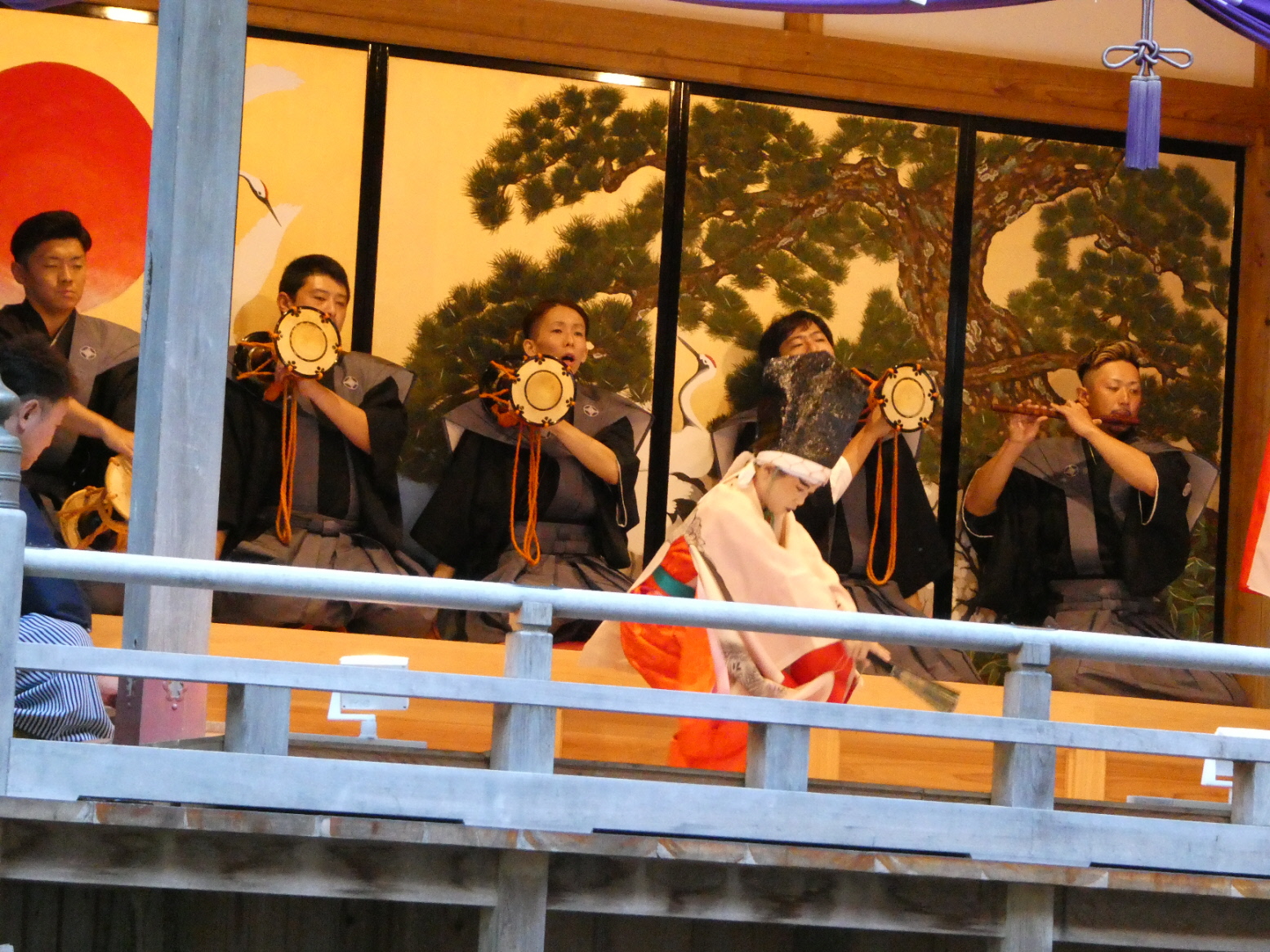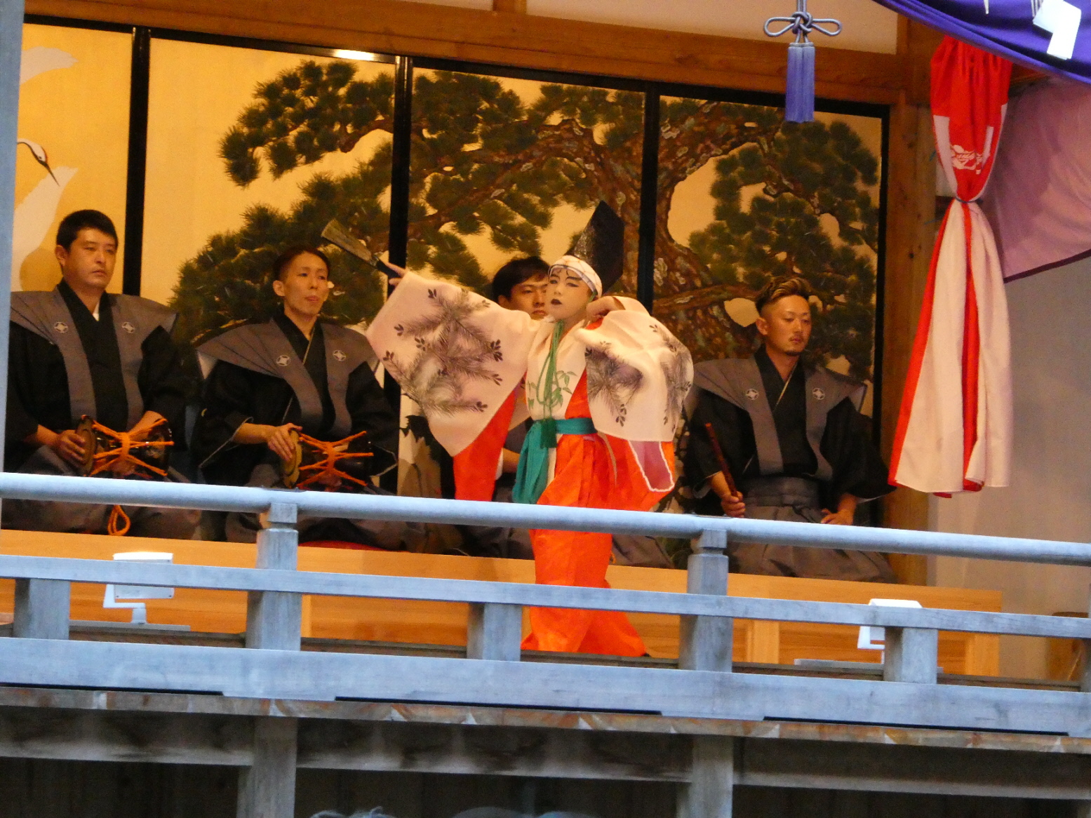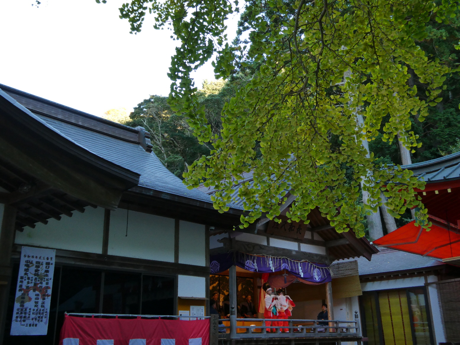 着いたら、まずは土地の神様にお参りだと思い、伊那下神社に足を運んで行くと、町のほうぼうににしめ縄が張られて、秋のお祭りが催されており、御神楽が演ぜられておりました。子どもの舞う神楽を隣で見ていたお年を召した女のおかたは友だちに、いいねぇ、なんか涙が出てきちゃうよ、とおっしゃられておられ、本当に涙ぐんでおられました。すばらしくて、ぼくも感動したことはもちろんです。ふと、この舞っている子どもの大人になるころには、ぼくもこの涙ぐんでおられる人もこの世界にいないのかもしれない、などと思ってしまいます。そして、また、その時の子どもが神楽を舞うのでしょう。ささやかな町のお祭りです。こういうのを見ると、日本って素敵だなと思います。紅白のお餅がくばられておりました。
