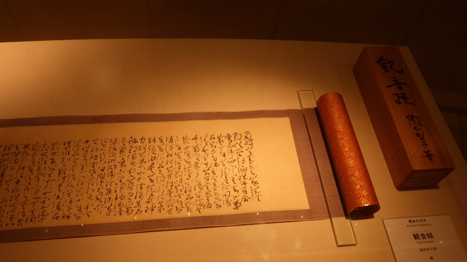 まずは常設展の「太朗の創造展」。岡本太朗のお母さんであった小説家、岡本かの子の写経した観音経が、何か惹かれるものがあった。岡本かの子の小説を読んだことはあったかな? 「女体開顕」? 今度、読んでみよう、と思う。