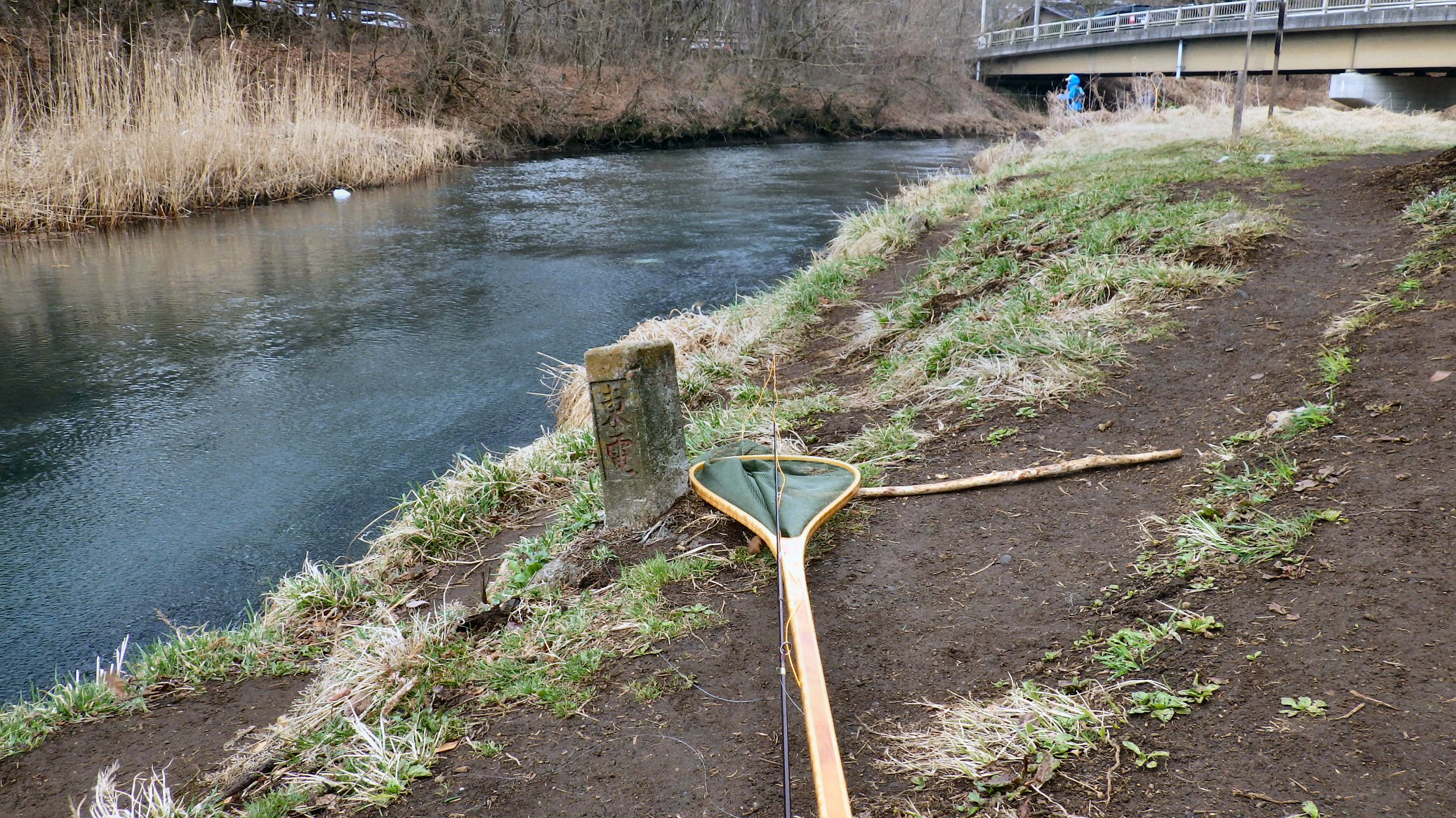 忍野村に着いてすぐに、フライフィッシングのプロショップ「リバーズエッジ」でついに忍野ネットと呼ばれる柄の長いおよそ人の丈のほどもあるランディングネットを手に入れました。かっこいい。なんでもこれを作る人がいなくなったか、やめてしまったかで、店頭に並んでいるものおしまいになるそうで、大事に使ってください、と手渡されました。手に入れられて、とてもよかった。忍野ネット、かっこいい。