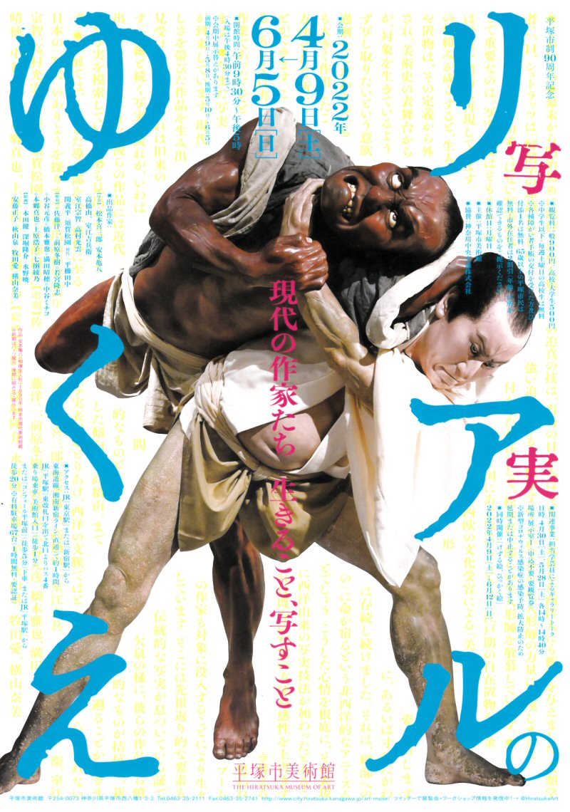 まずは平塚市美術館で同時開催中の展覧会『リアルのゆくえ』を見ます。現実を写し取ろうとする具象絵画の展覧会。本物の手にしか見えない佐藤洋次さんのシリコーンで作られた義手に驚く。深堀隆介さんの一年か二年前に樹脂で作られた一合升で泳ぐ金魚の江戸情緒の涼やかな美しさよ。