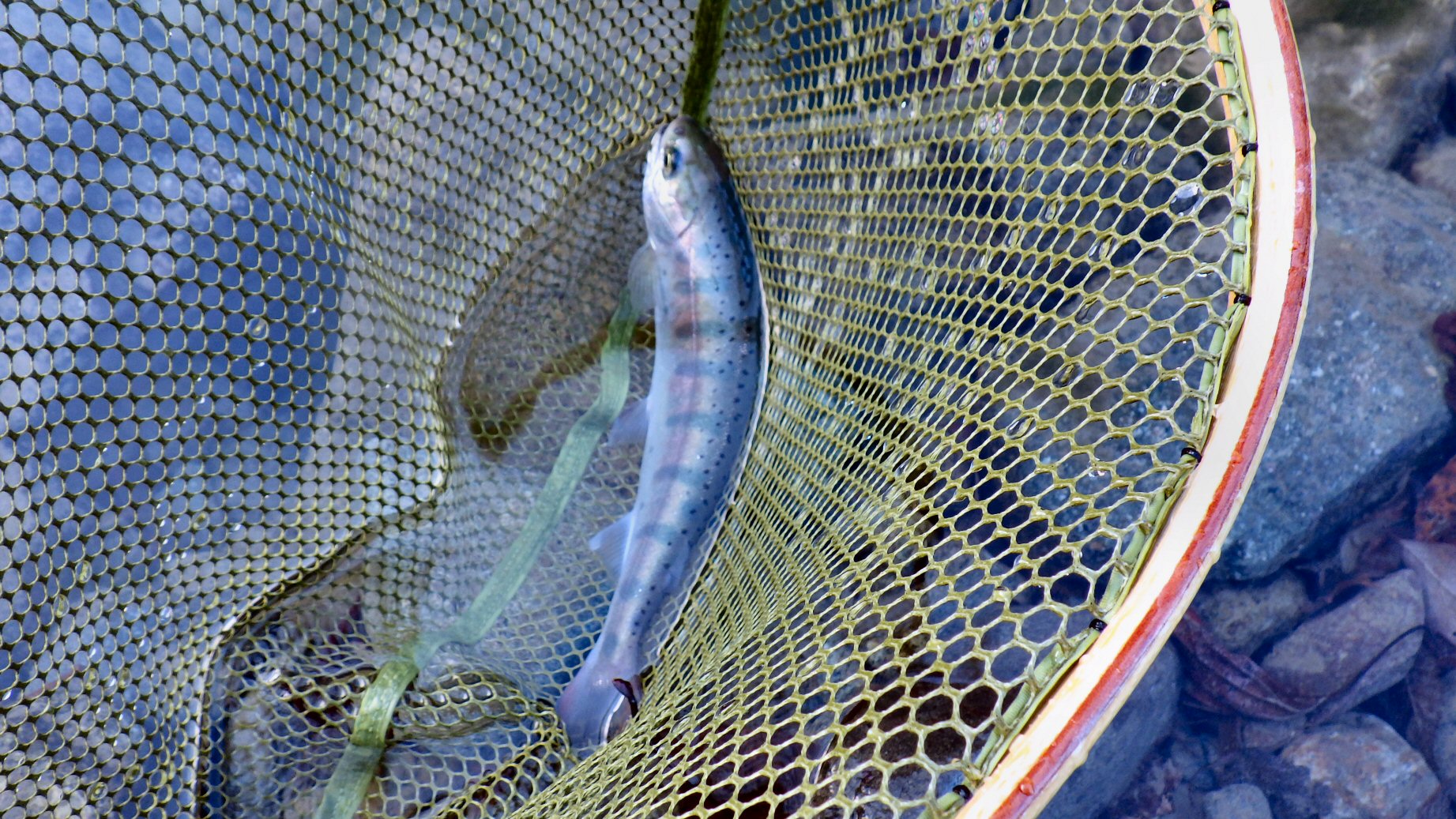 びっくりして、ぼくは記念の写真も撮らずに、すぐに魚を水の中に放してあげました。大概は放した魚は一目散に川の流れの向こうに向かうものですが、その大きな虹鱒は、ぼくの近くの辺りの水の中でふた回りほど泳いで円を描き、ゆっくりと流れの向こうに消えて行きました。その姿から、ぼくは水の中の生きものから何かの友愛のような信号を送られたような気持ちになったのです。