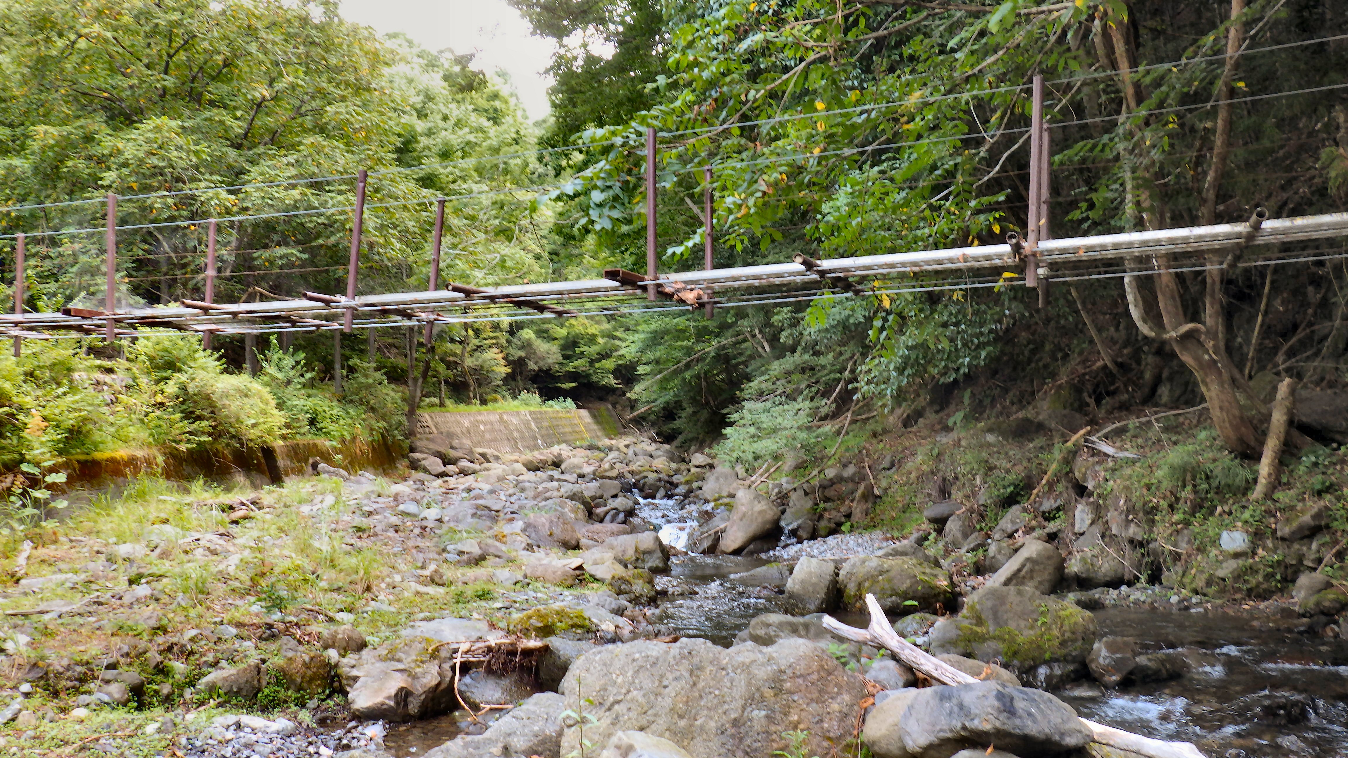 おじさんにいわれた通りに、人が一人歩けるほどの吊り橋と吊り橋の間を、釣りをしながら川上にあがったけれど、魚影やライズ(魚が虫を食べようと水面にあがってきて、水面が少しふくらむ)は見えず、釣果はゼロ匹でした。