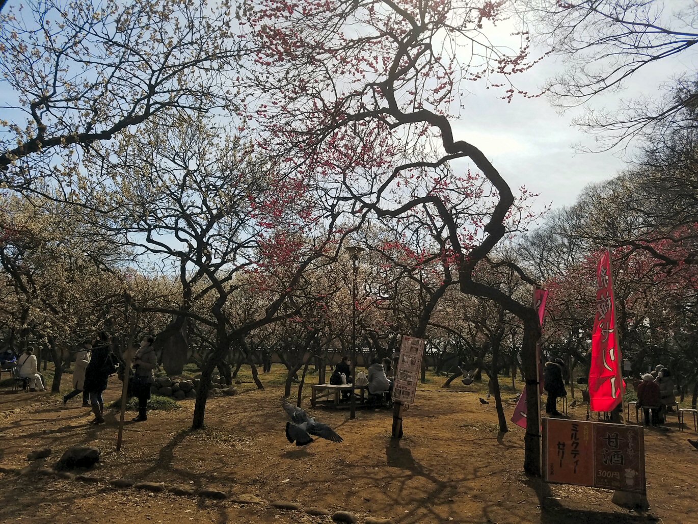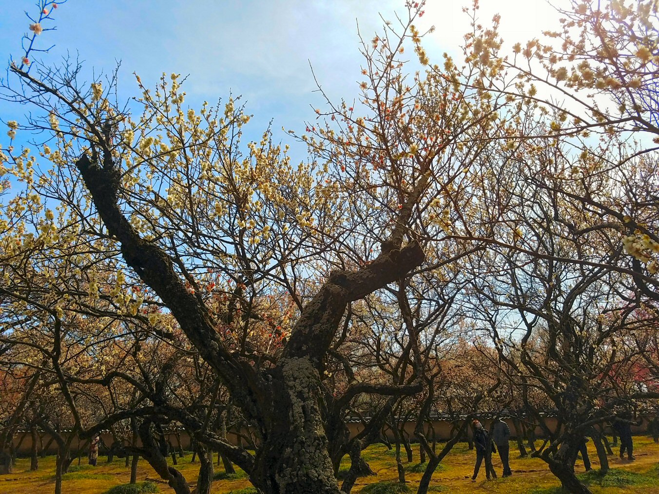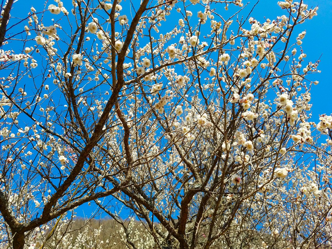 そして、梅の花がきれい。梅林に美しい鶏も歩いている。風情があります。