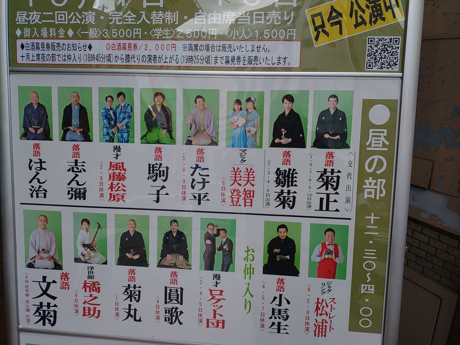 暗いこの世のつらさ忘れ、寄席は心のオアシスです。
