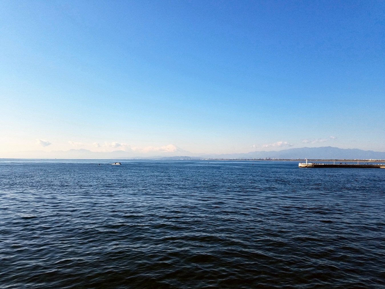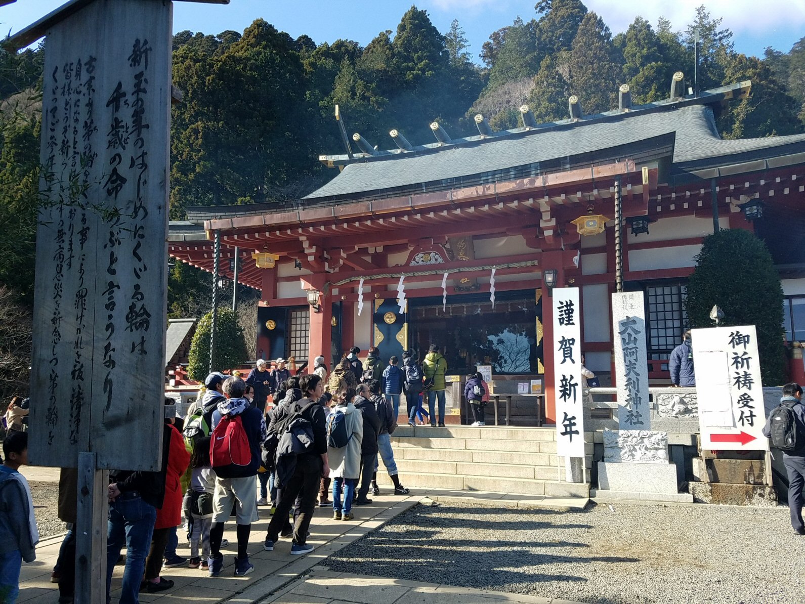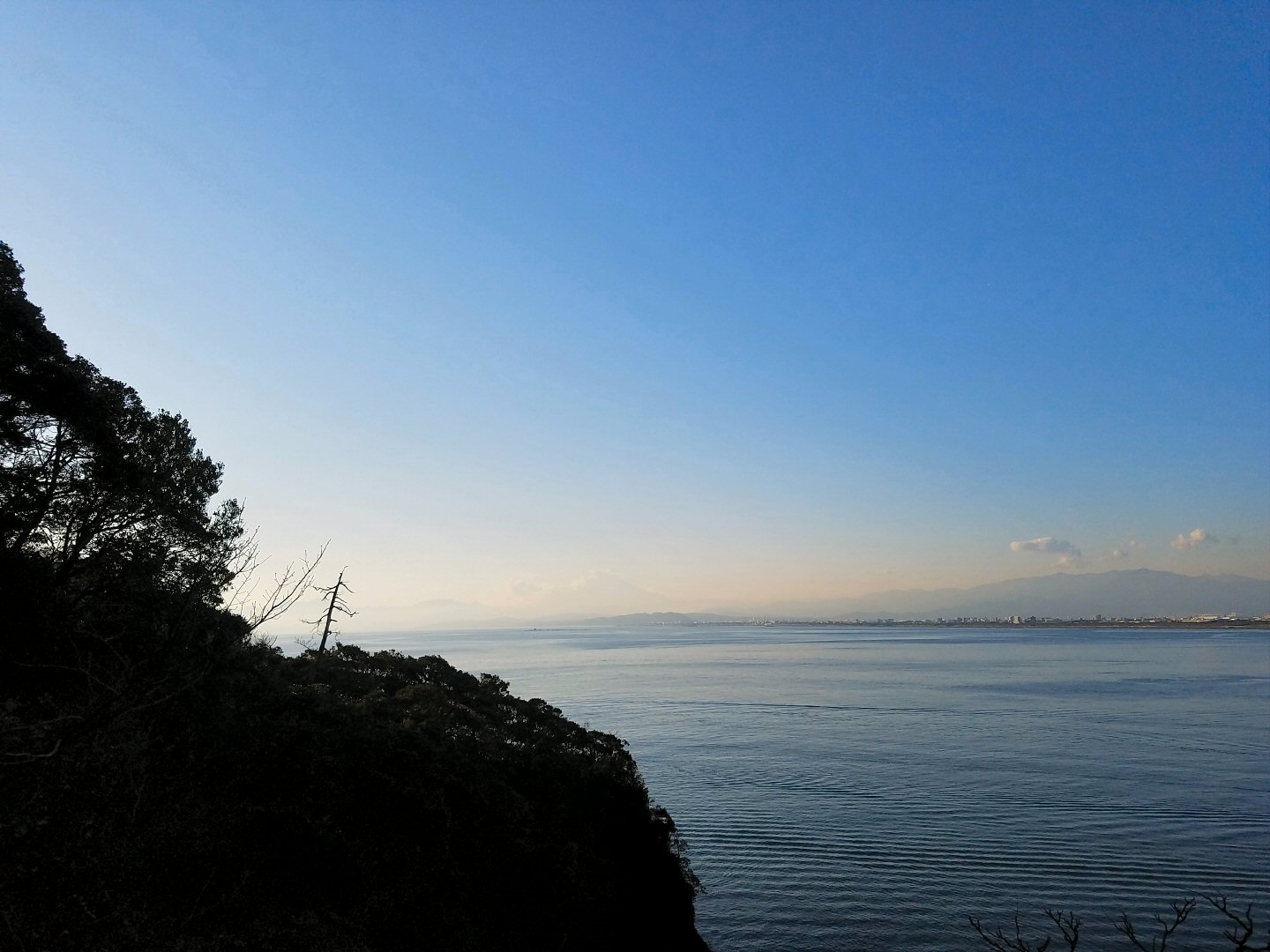 善男善女が江島神社の辺津宮、中津宮、奥津宮につどう日本晴れのいい天気で、青い海が輝いていて、富士山も美しい姿を現しておいでになっておりました。