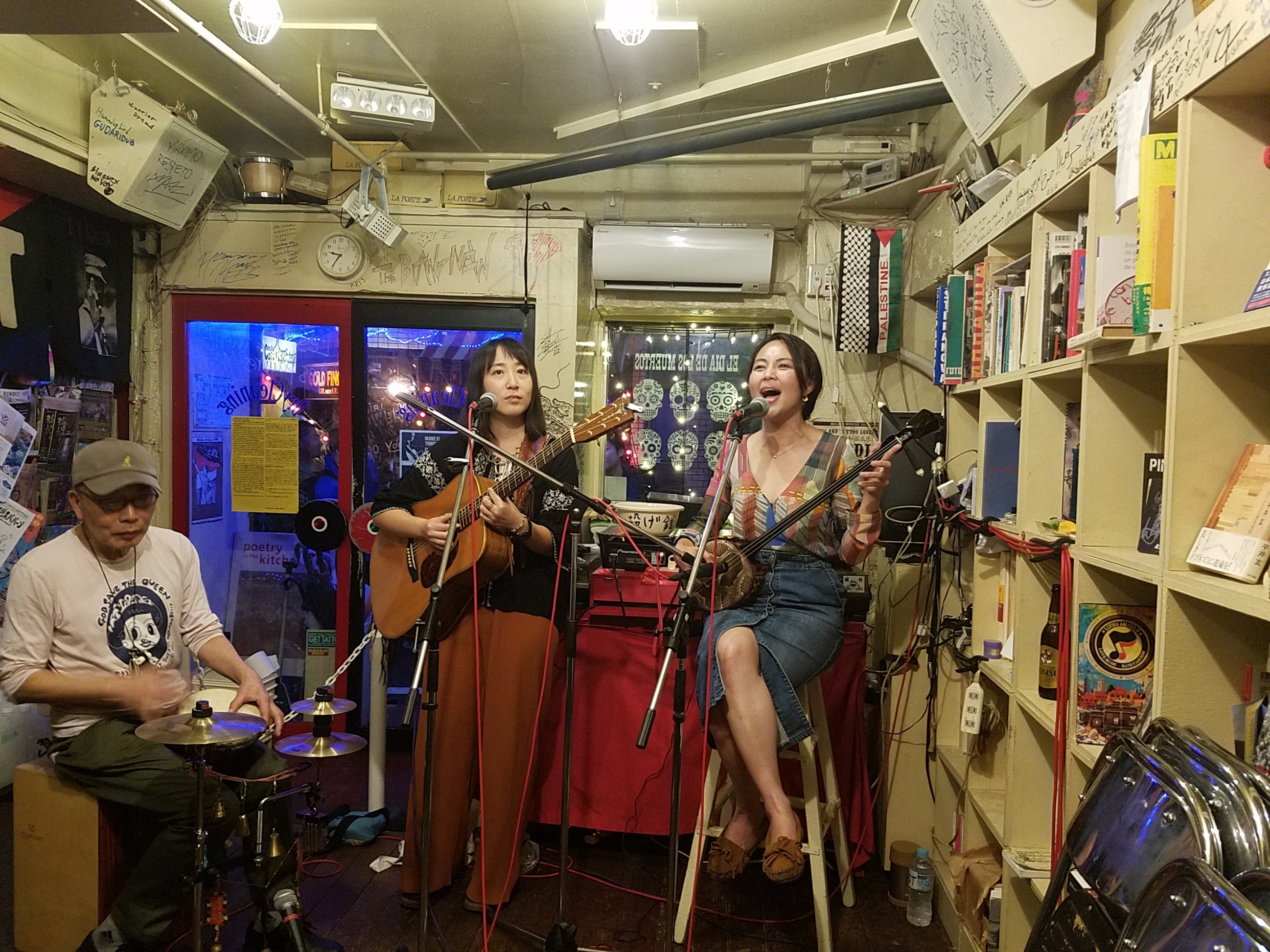 辻村マリナさん作られたり、作ったりしない、今を歌って今を生きているような歌に、そうだよなと、ほっとしたり、はっとしたりする。パーカッションのらぶたひさんのブラシロッドで叩くパーカッションも手堅く素晴らしかった。ゲスト出演のエリ・リャオさんの歌は環太平洋をめぐる一人ワールド・ミュージックのおもむきの楽しさ。