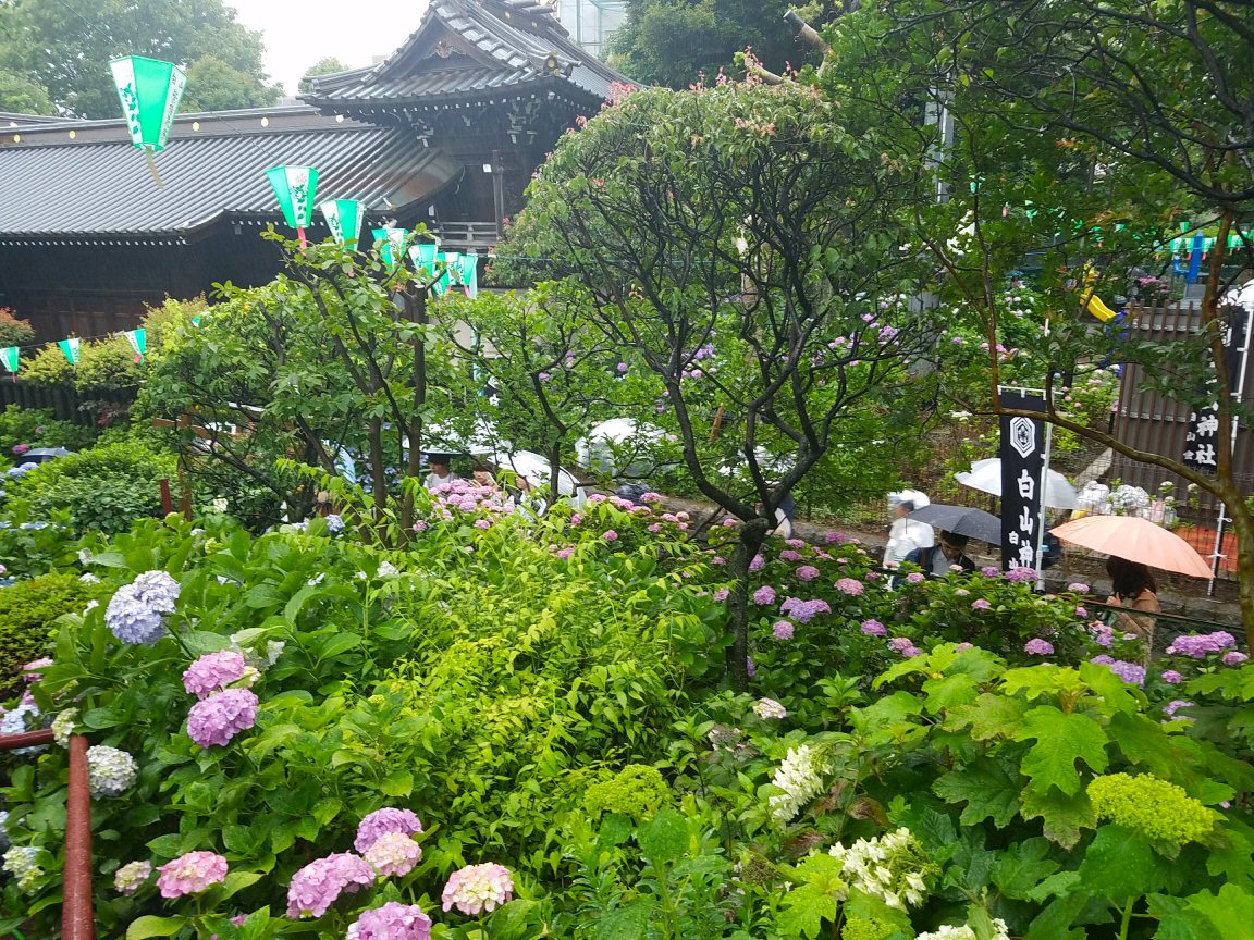 文京区の白山にある白山神社に紫陽花を見に行きました。雨に濡れた紫陽花はきれいです。