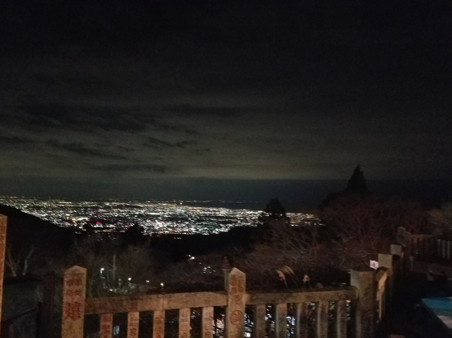 さらにケーブルカーに乗り、同じ大山の大山阿夫利神社に詣でます。夜、まばらにしかまだ人のいない神社からの神奈川の夜景は、写真には撮れないことのほか美しさです。柏手を打ちます。ふるまわれている七草粥を食べます。そして、おみくじをひいてみると「大吉」です。