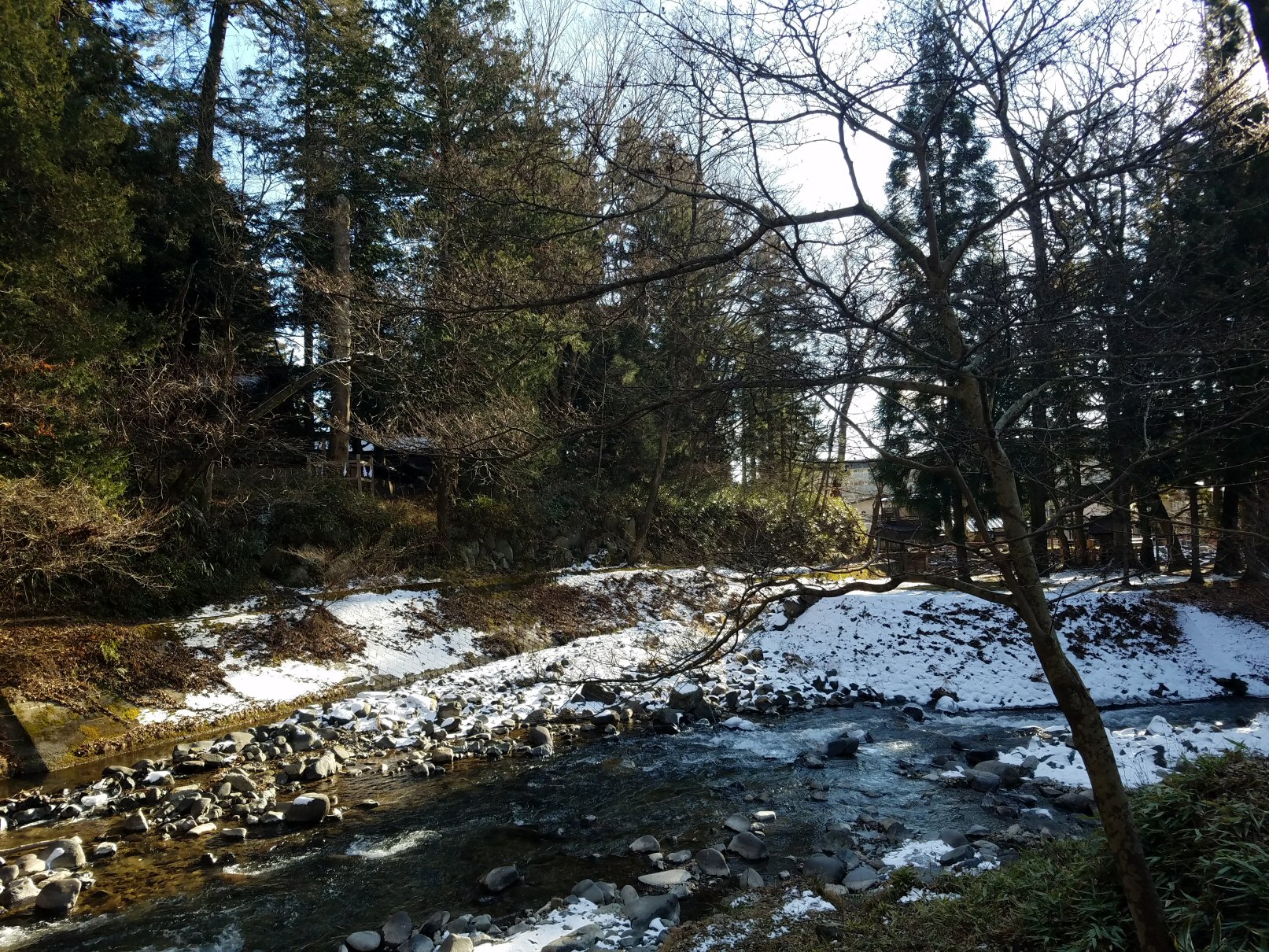 万治の石仏と諏訪大社秋宮の間を流れる小川です。
