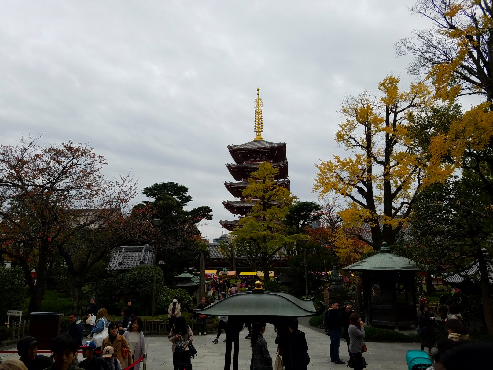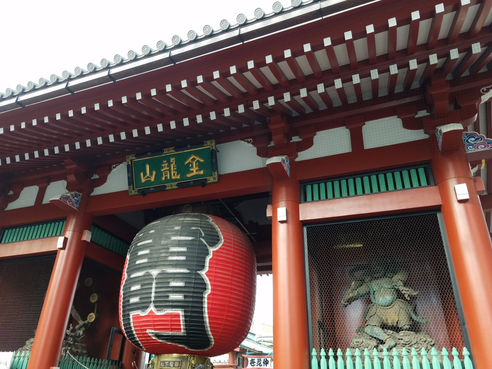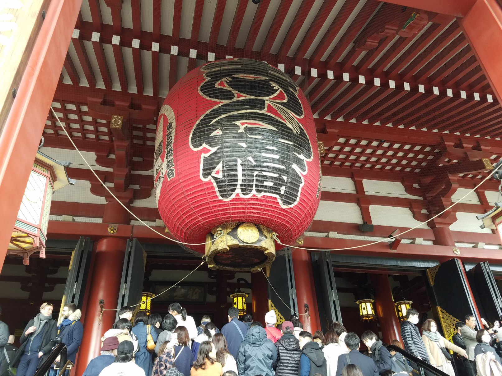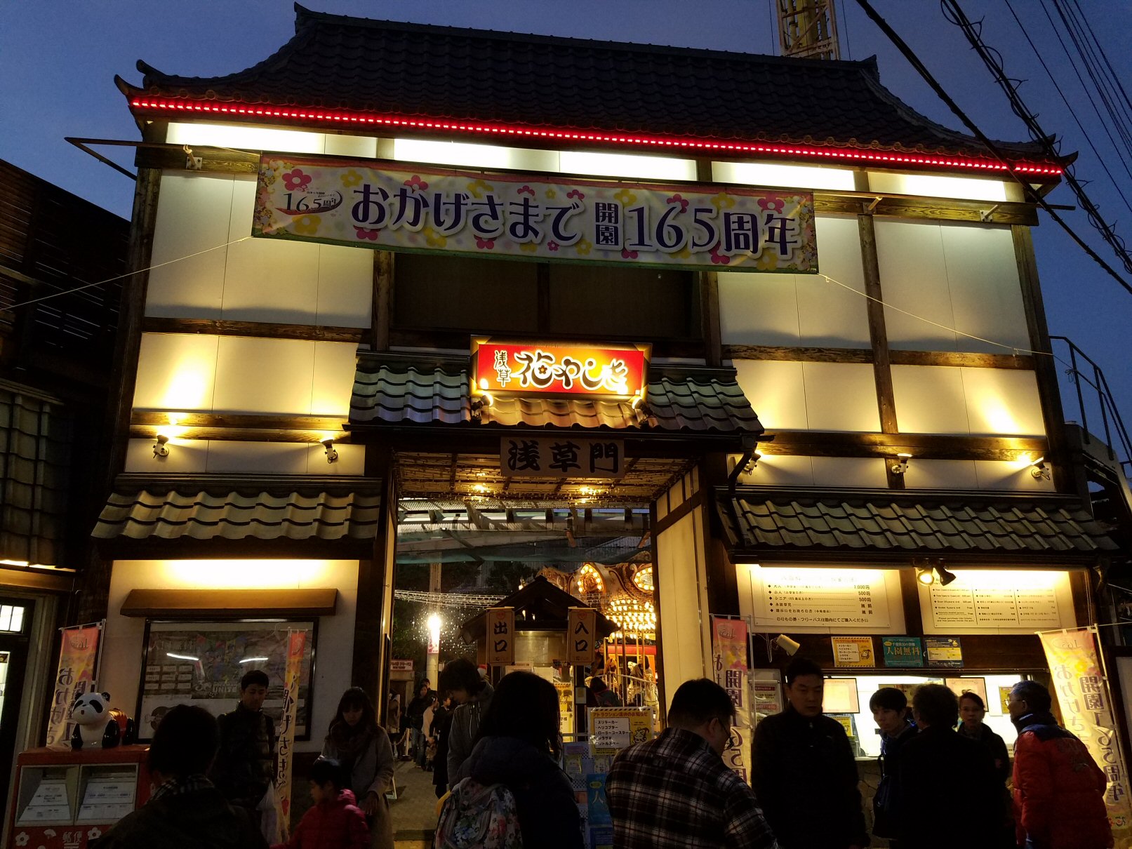 外に出ると向こうの方に浅草寺とまん丸いお月さま。